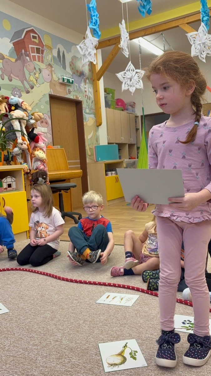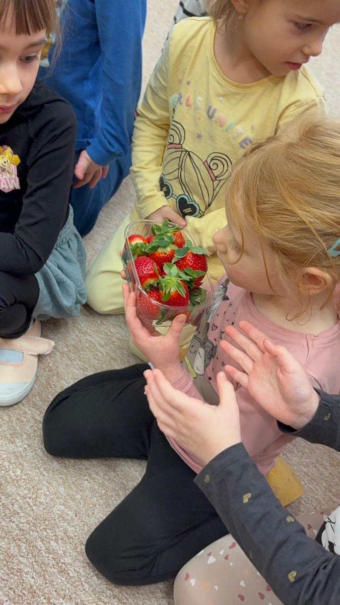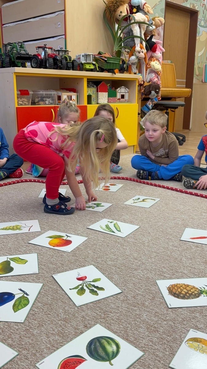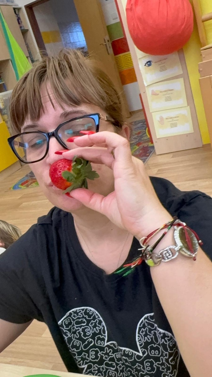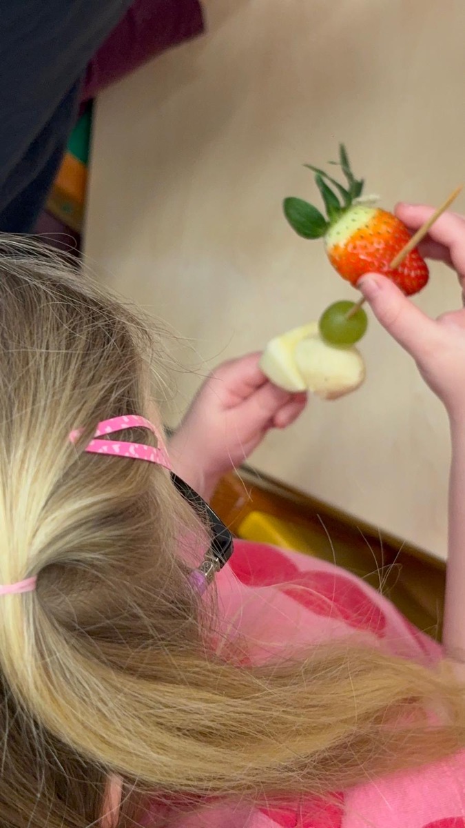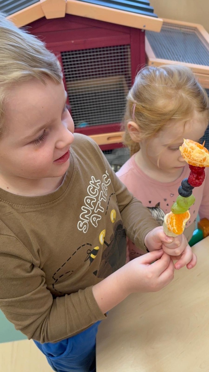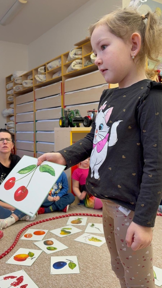 Dnešní aktivita s tématem VITAMÍNY byla nejen prožitková, zábavná, ale byla i velmi přínosná. Učíme se o jídle, třídíme ovoce a zeleninu a povídáme si o jejím nejen růstu, ale i chuti. Vnímáme ovoce všemi smysly nejen chutí, ale i vůni. Jak chutná? Jaké je? Jaké je oblíbené? Nakonec si děti samy vyrobily ovocný špíz podle vlastní chuti i přání.