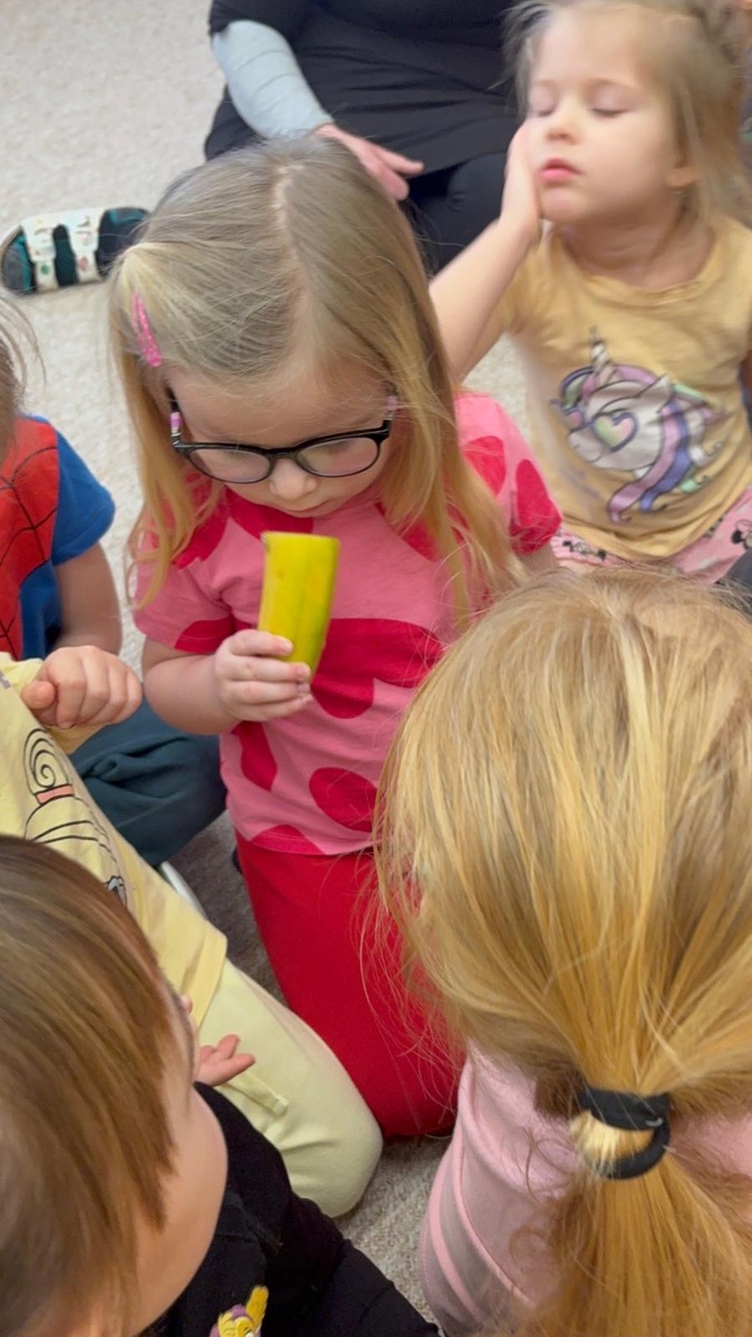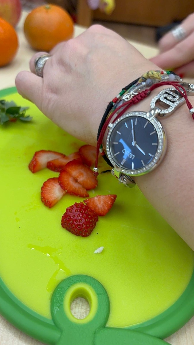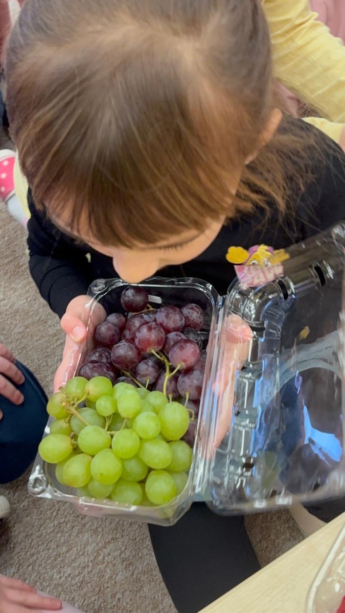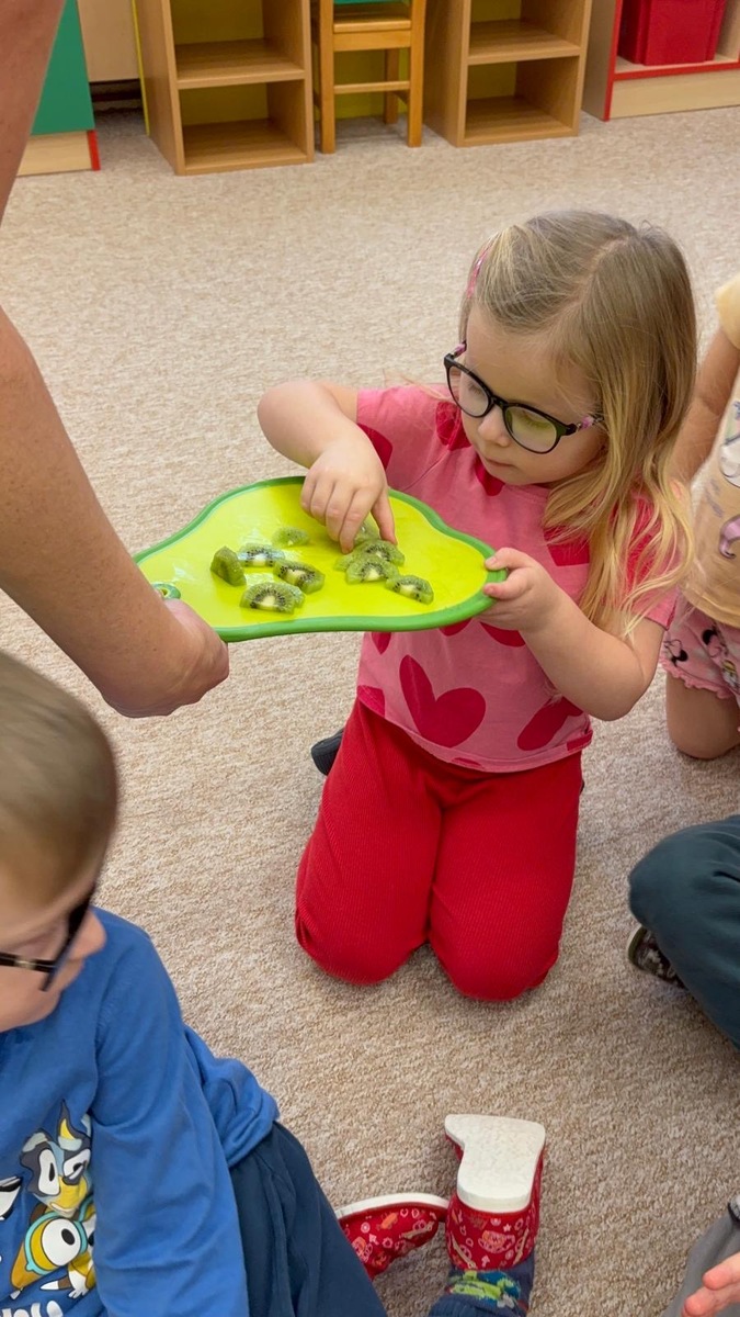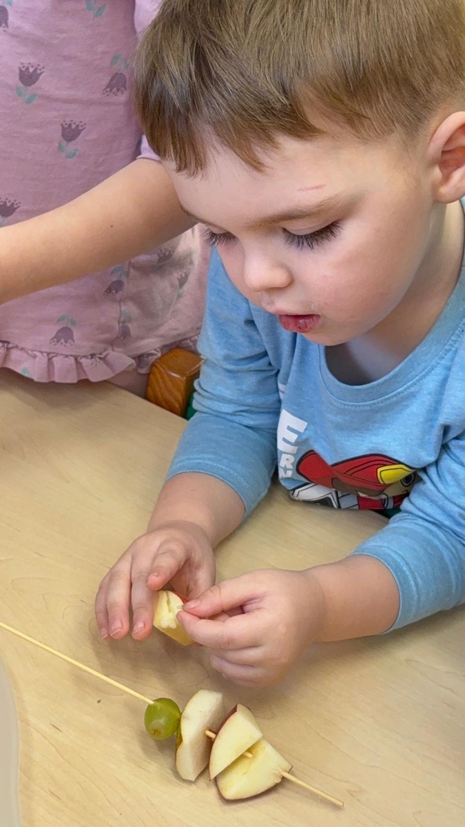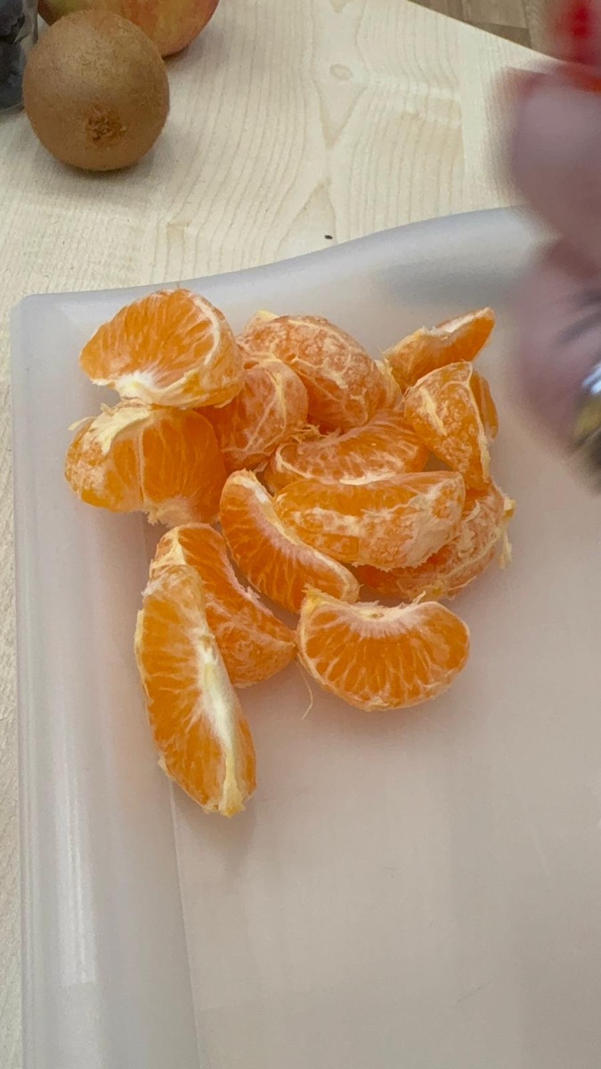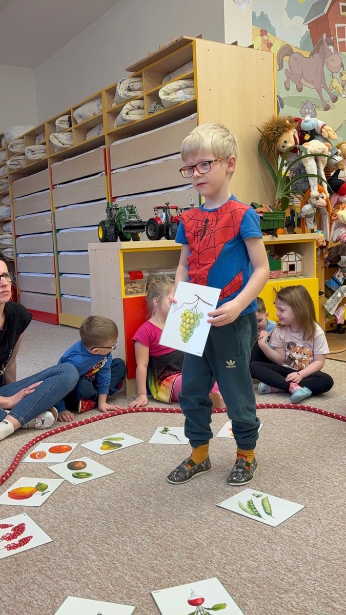 Dnešní aktivita s tématem VITAMÍNY byla nejen prožitková, zábavná, ale byla i velmi přínosná. Učíme se o jídle, třídíme ovoce a zeleninu a povídáme si o jejím nejen růstu, ale i chuti. Vnímáme ovoce všemi smysly nejen chutí, ale i vůni. Jak chutná? Jaké je? Jaké je oblíbené? Nakonec si děti samy vyrobily ovocný špíz podle vlastní chuti i přání.