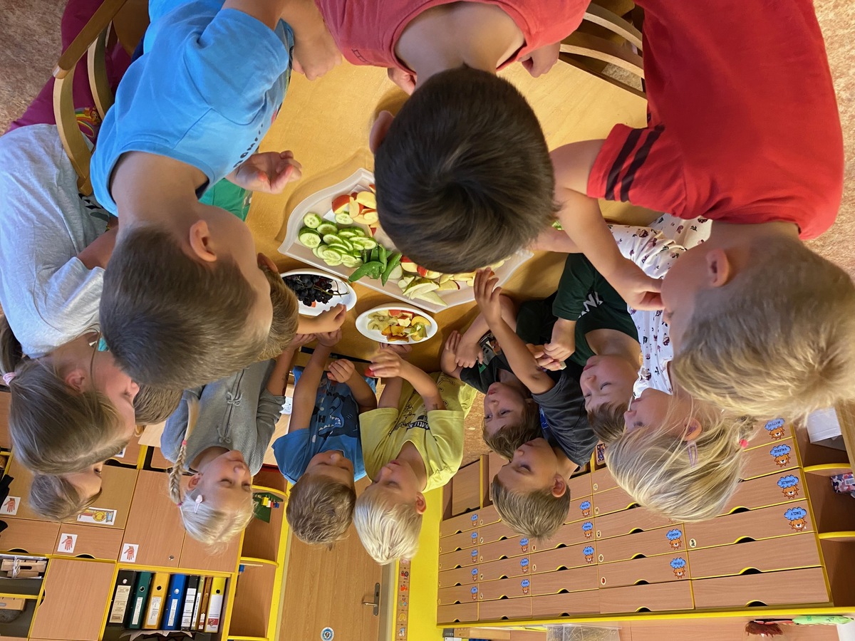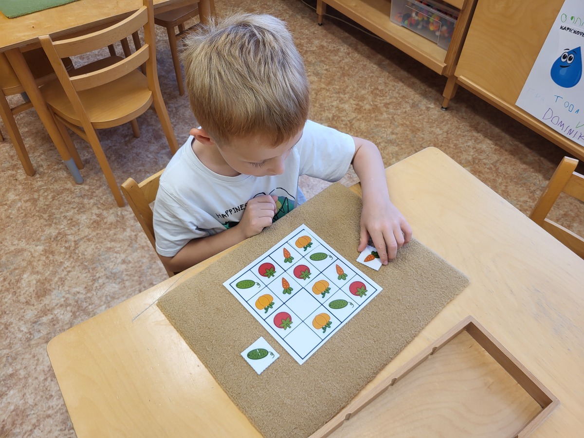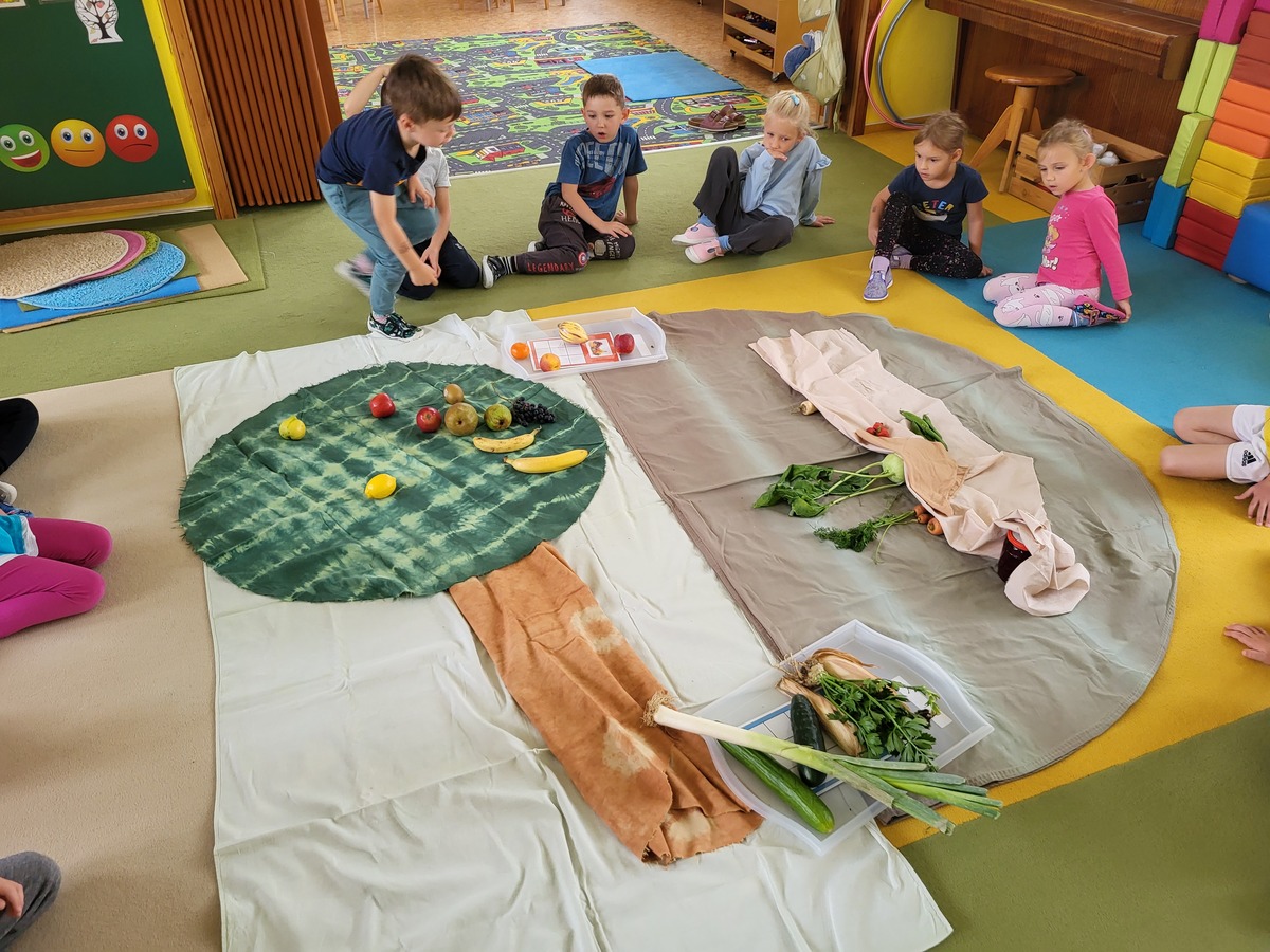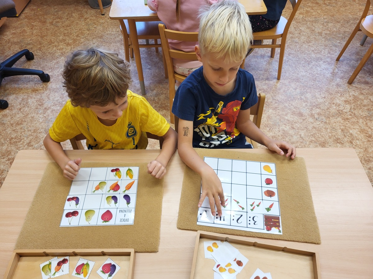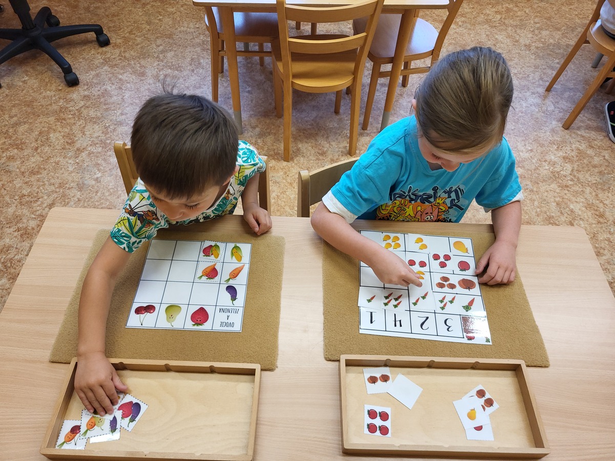 Celý týden jsme se věnovali ovoci a zelenině. Skládali jsme sudoku, třídili jsme na ovoce a zeleninu, také podle toho, co kde roste - na stromě nebo na záhonu. Poznávali jsme očima, hmatem, čichem a hlavně ochutnávali. Byli jme se podívat, kde se zelenina pěstuje.