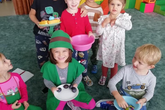 Témata o ovoci a zelenině jsme v naší školičce okořenili dramatizací písniček, básniček a pohádek o ovoci a zelenině. Pohádka "O veliké řepě", písnička "Měla babka, čtyři jabka", básnička "Princeznička na bále", "Máme hrnec veliký,vaříme v něm knedlíky". Vždysi u toho užijeme spoustu ledgrace.