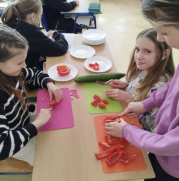 V pátek 11. dubna díky projektu Ovoce a zelenina do škol každá třída 1. stupně dostala bedýnku s okurkami, paprikou a rajčaty. Žáci pracovali s pracovními listy, povídali si o druzích zeleniny a jejich důležitosti ve stravě. Některé třídy při ochutnávání hodnotily chuť, vzhled nebo vůni. Podle smyslů žáci hádali, kterou zeleninu ochutnávají. Jiní připravili okurkový nebo okurkovo-rajčatový salát.