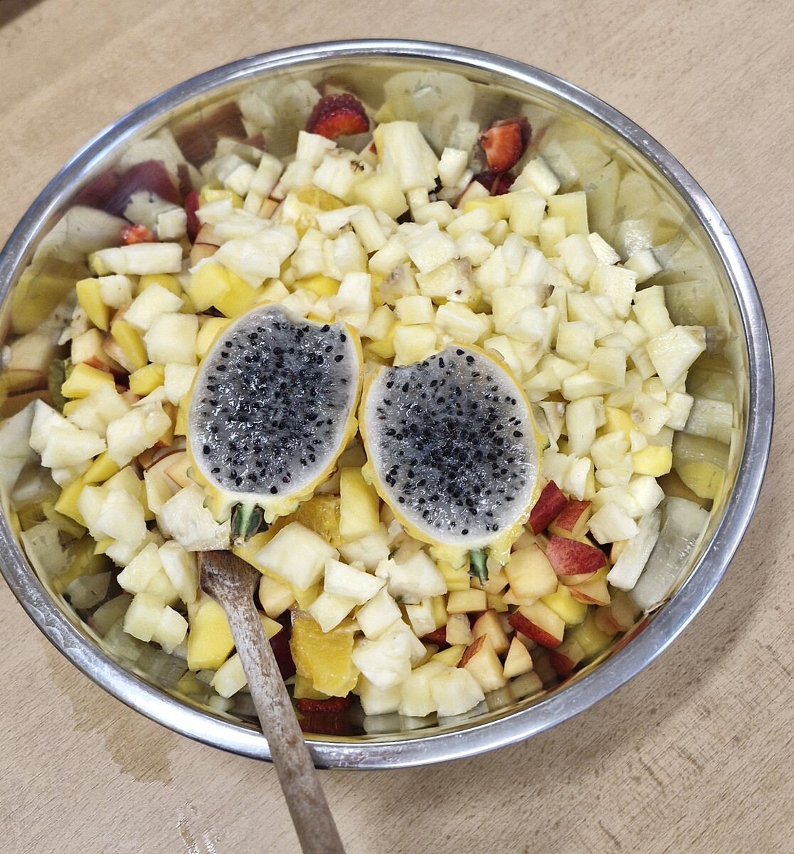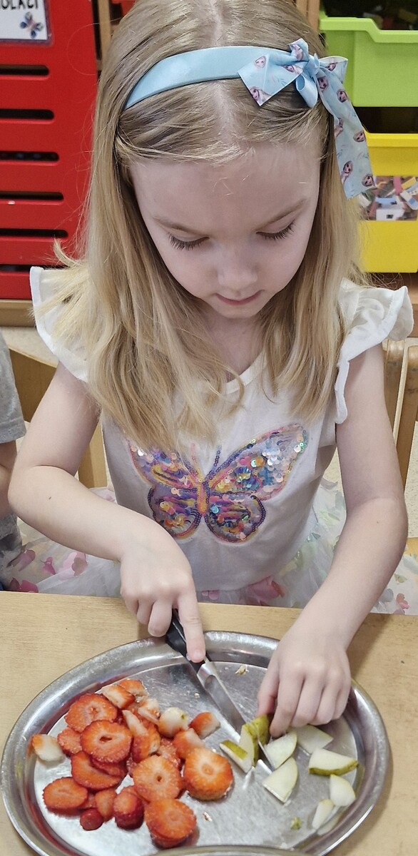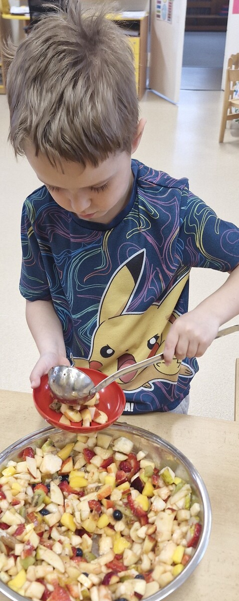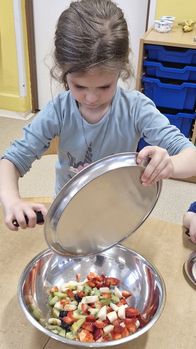 S dětmi jsme se rozhodli být na chvíli kuchaři a připravit si ovocný salát z různých druhů ovoce.