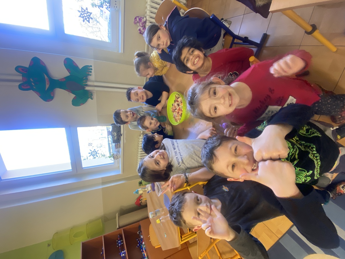 Od 21. 2. do 25. 2. probíhalo na naší škole projektové vyučování na téma TÝDEN ZDRAVÍ. Zaměřili jsme se na důležitost hygieny, pohybu, zdravého využívání volného času a velký podíl byl věnován i zdravému stravování. Ve školní družině si zahráli nejprve hru na poznávání druhů ovoce podle chuti, což sklidilo veliký úspěch. Následně společně připravily ovocný salát, který disponoval mnoha druhy ovoce a krásně hrál i barevně. Zapojeny byly všechny děti, nejvíce je bavilo krájení ovoce a následné míchání. Salát vylepšily o bílý jogurt, který ochutily medem. Přiravily si tak zdravou chutnou svačinky, na kterou se vrhly po odpolední procházce