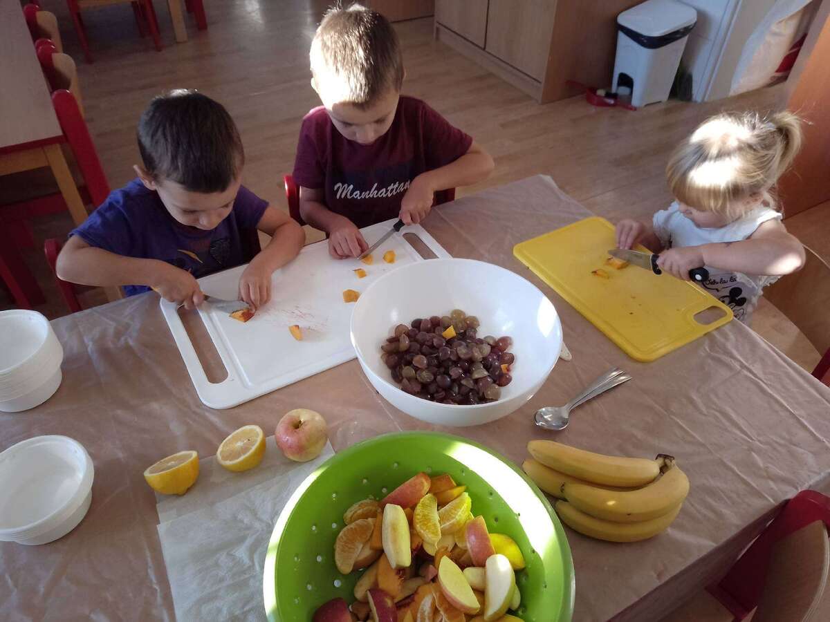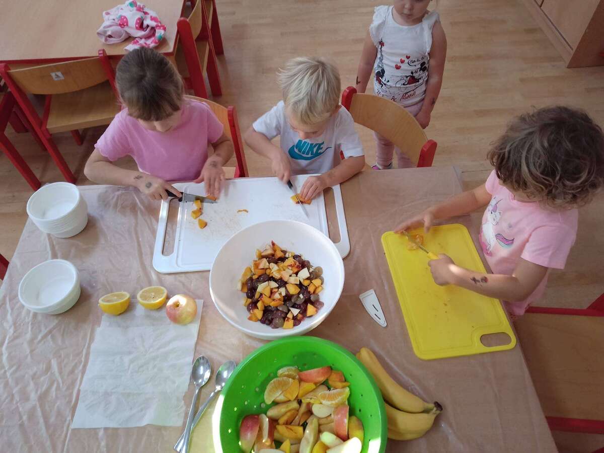 V rámci aktivit na podporu zdravého stravování si děti z naší mateřské školy vyzkoušely přípravu ovocného salátu. Společně si povídaly o různých druzích ovoce, o tom, proč je důležité pro naše zdraví, a jak ho správně zpracovat.