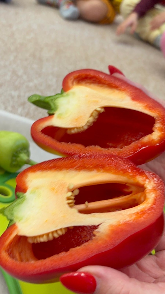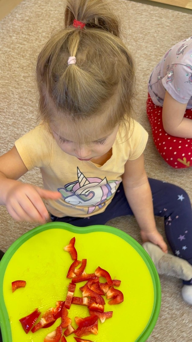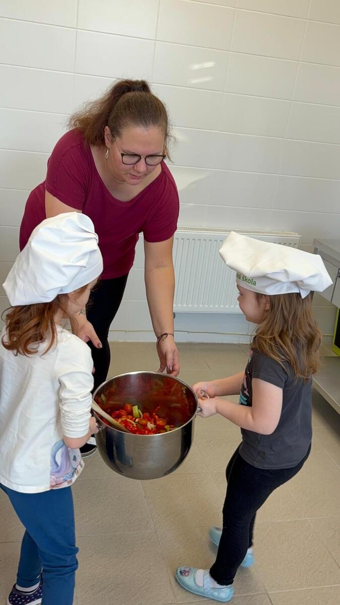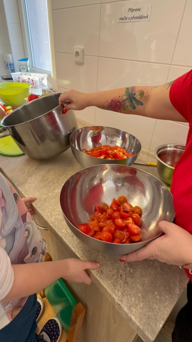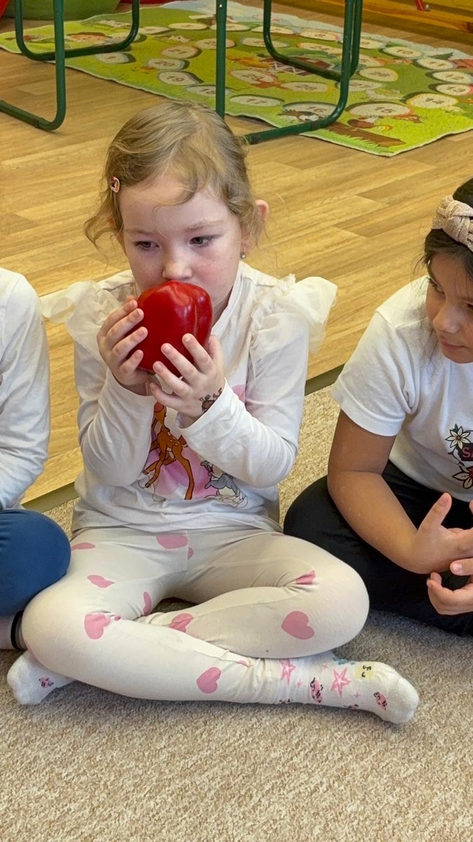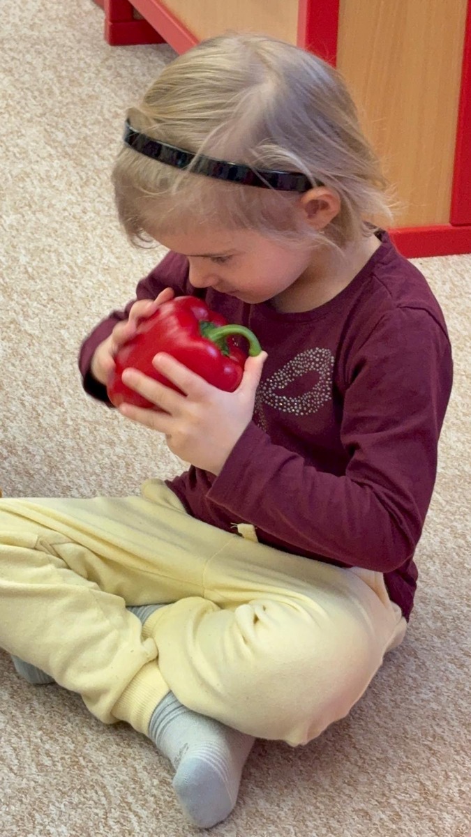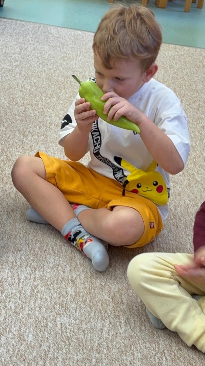 Učíme se prožitkem i vlastním zážitkem. Dnes na děti čekala “paprika”. Paprika nejen v podobě společného vaření, ochutnávky, ale také pohybové hry. I v jednomu tématu lze s úsměvem propojit naše směry, které nás nejen baví, ale naplňují. pohybová hra - molekuly “papriky” kde bydlí semínka jak voní paprika jak chutná paprika a společná ochutnávka jak vypadá paprika kde roste paprika společná příprava oběda - vaření leča