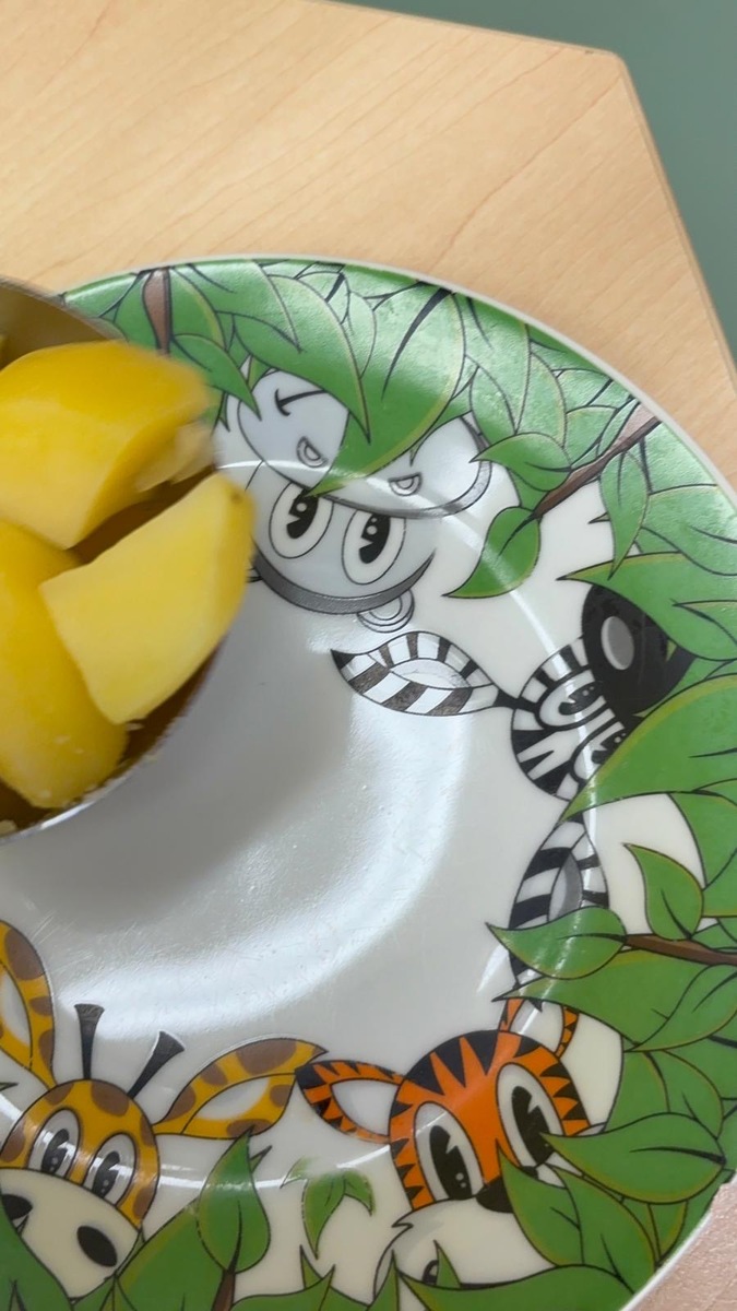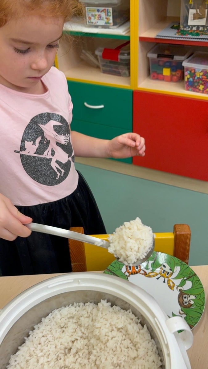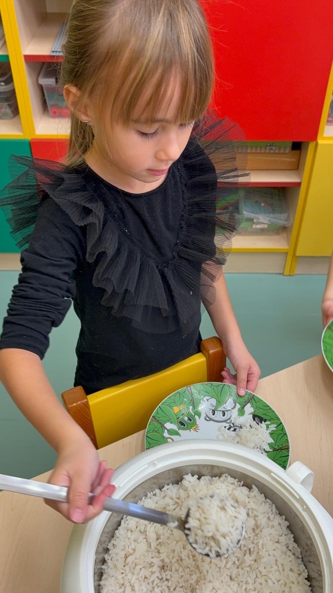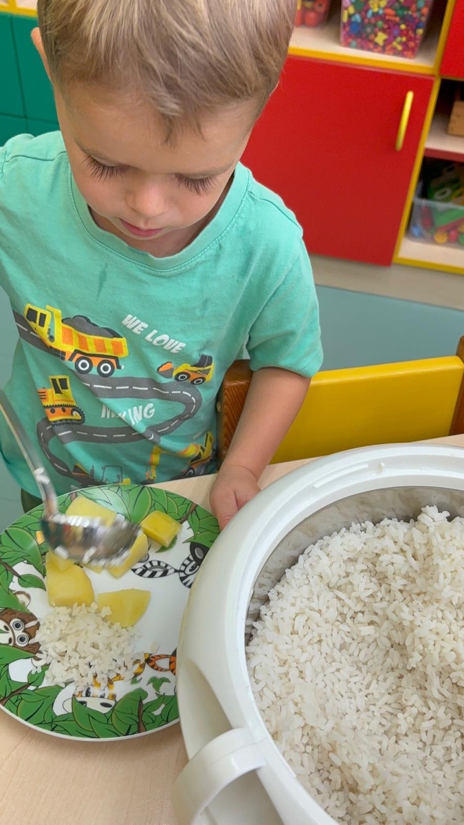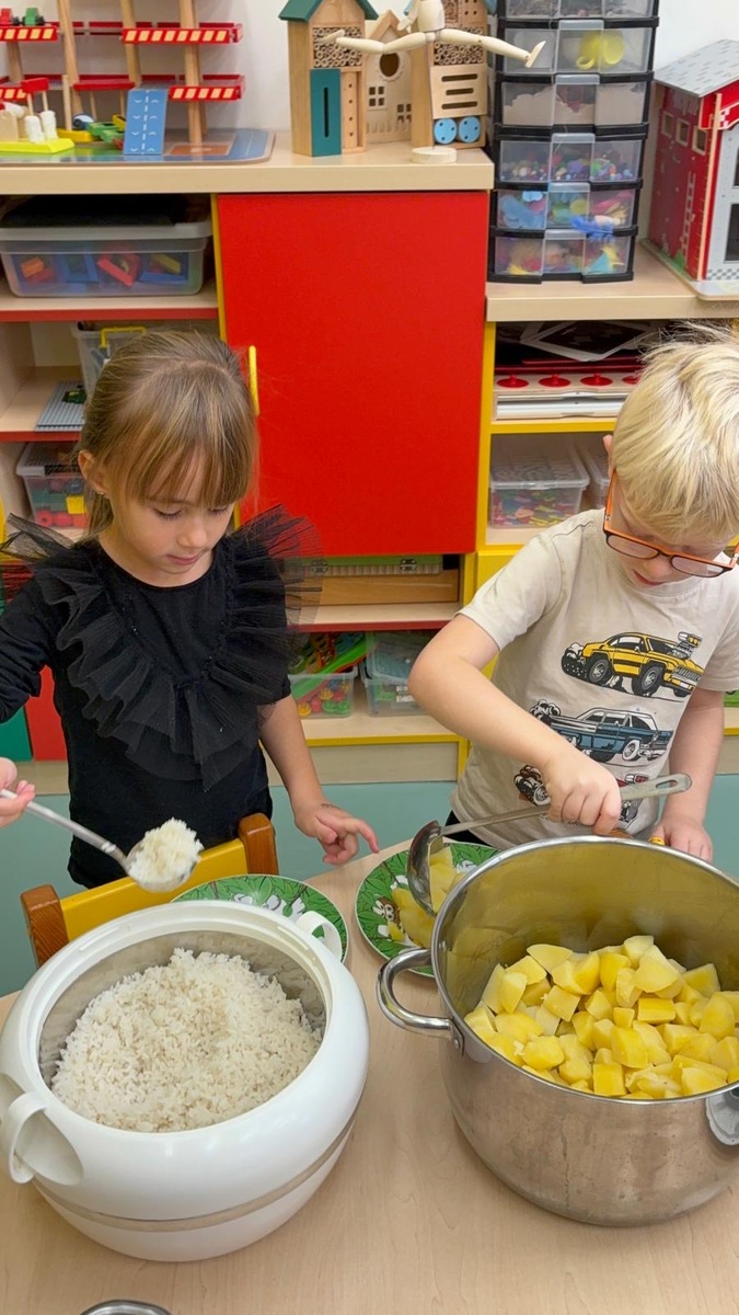 I při pátku měly děti možnost výběru k mufloní u gulášku buď jasmínovou rýži nebo lokáni vařený brambor. Děti si samy vyberou i naberou. Původně je jednalo o zkoušku, ale toto rozhodnutí nese ovoce a nám se skutečně vrací do kuchyně prázdné talíře a co navíc? I děti které moc nejí nebo vybírají, tak tato metoda je “přinutila” nejen jíst , ale chodí si i přidávat.