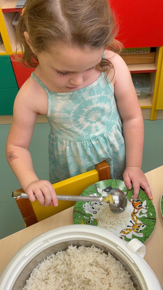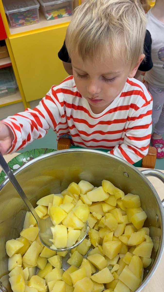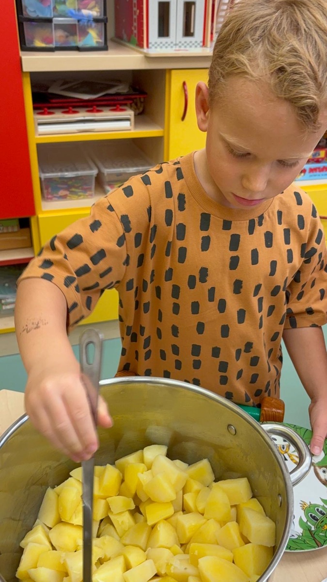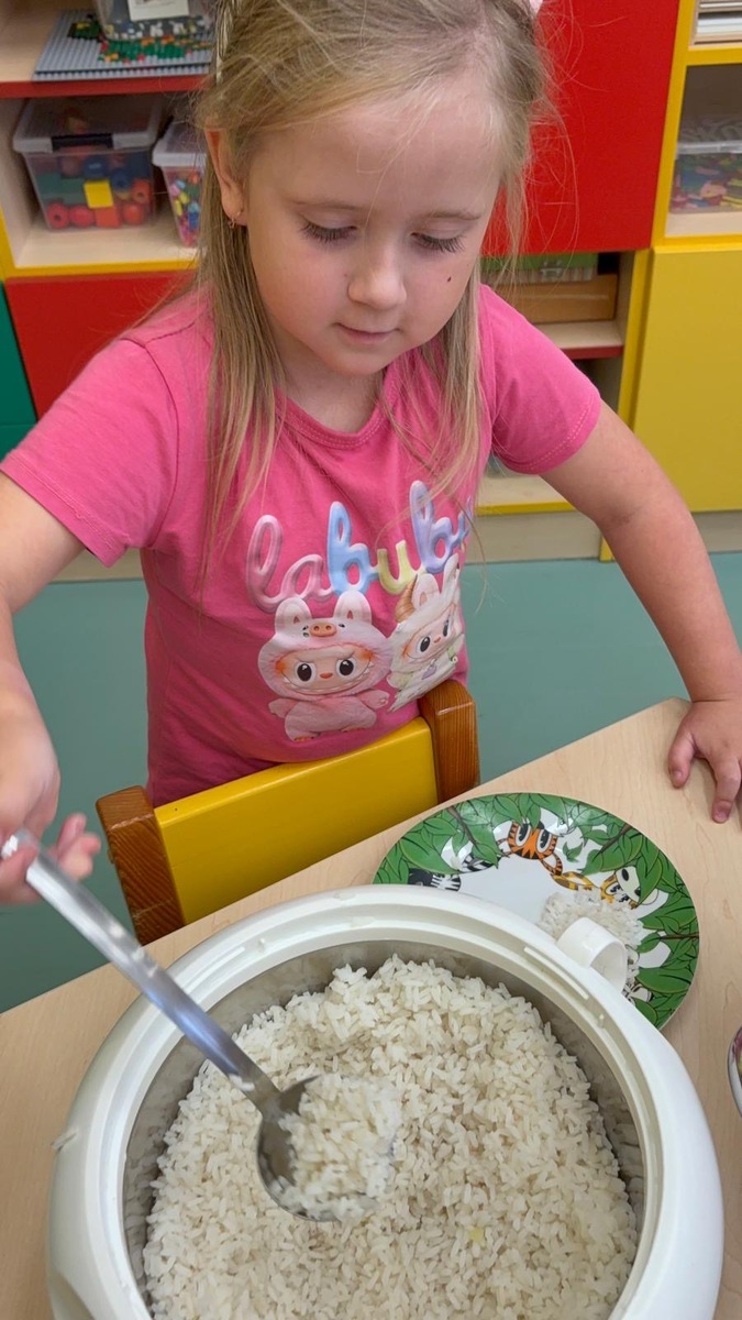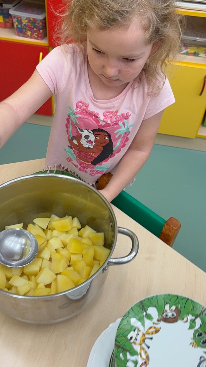 I při pátku měly děti možnost výběru k mufloní u gulášku buď jasmínovou rýži nebo lokáni vařený brambor. Děti si samy vyberou i naberou. Původně je jednalo o zkoušku, ale toto rozhodnutí nese ovoce a nám se skutečně vrací do kuchyně prázdné talíře a co navíc? I děti které moc nejí nebo vybírají, tak tato metoda je “přinutila” nejen jíst , ale chodí si i přidávat.