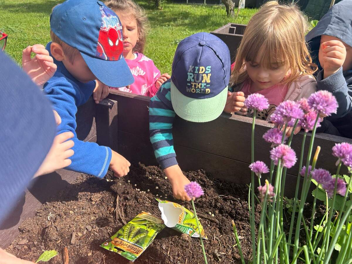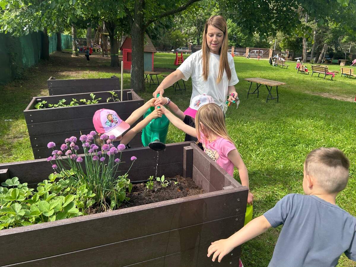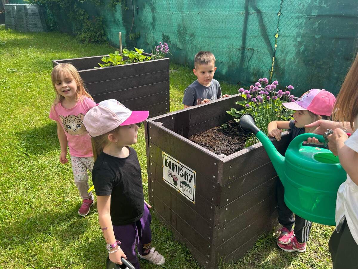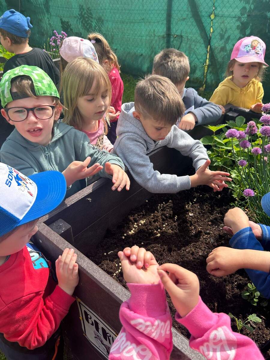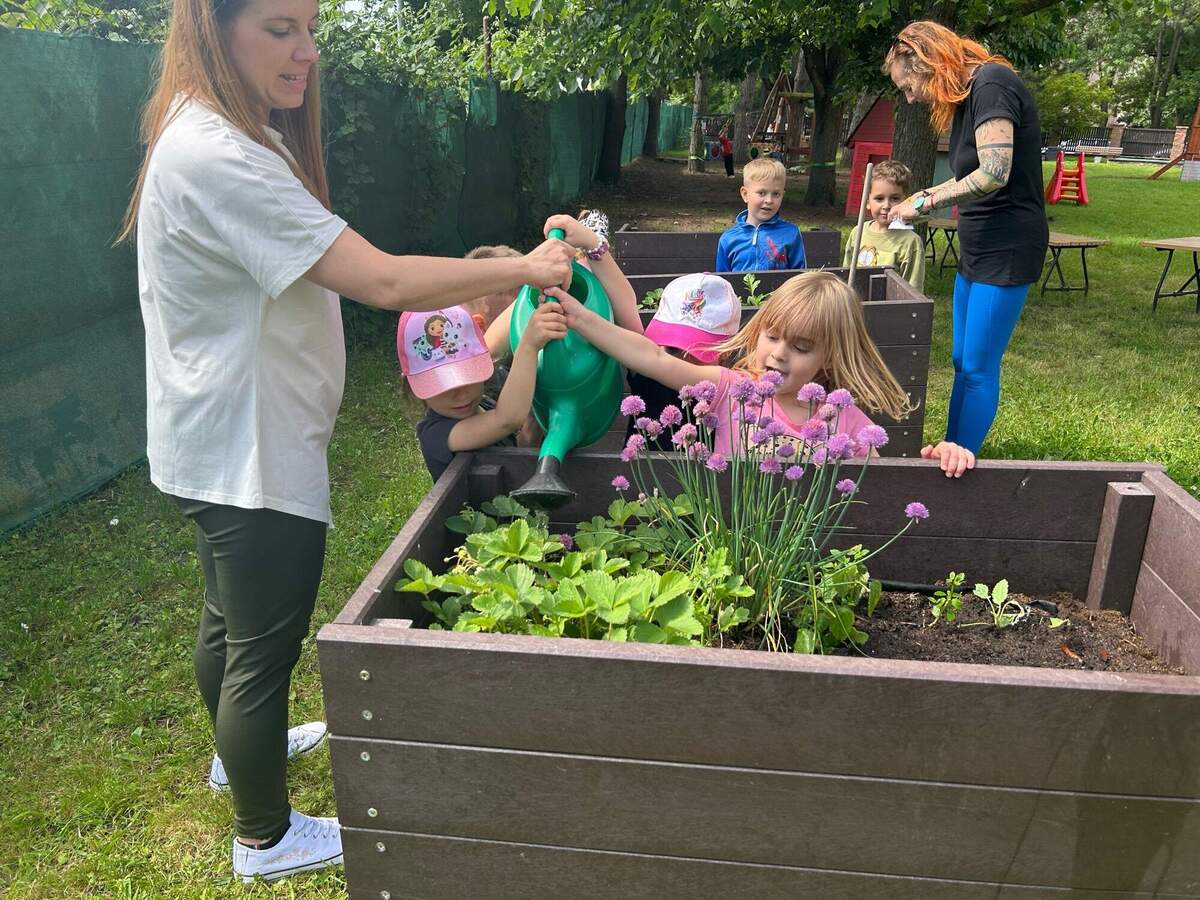Postupně jsme se pustili do osazování našich záhonků Děti si vyzkoušely sázení i péči o rostliny a s radostí sledují, jak se jim daří. Čekáme a těšíme na první úrodu.