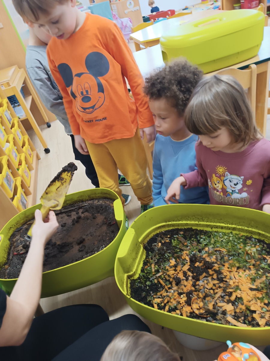 Děti v naší školce rádi pomáhají při krmení i čištění ubykací pro školková zvířátka. Tento týden jsme čistili důlkadně vermikompostér žížalám. Děti viděly jak se musí žížalky přendavat, jaký vznikl kompost a jak se stáčí žížalí čaj (hnojivo pro květiny). Dále jsme po zimě vyčistili Vermikárium, kde jsme museli odchytit matku s mravenci. Dětem se to moc líbilo. Péče o králíka je každodenní rutinou, u které se děti rády střídají.