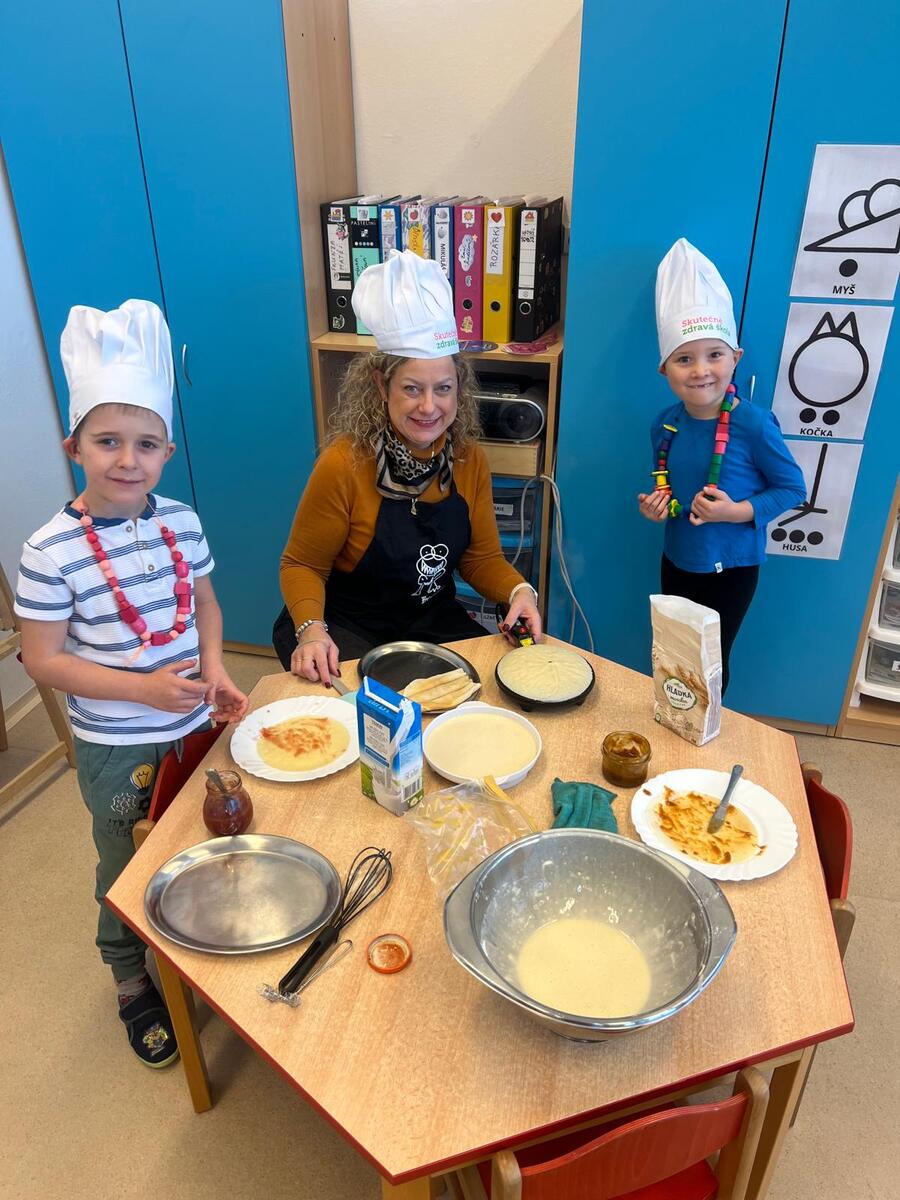 V Modré třídě často připravujeme různé dobroty v cetru DOMÁCNOST. Tentokráte to byly palačinky...