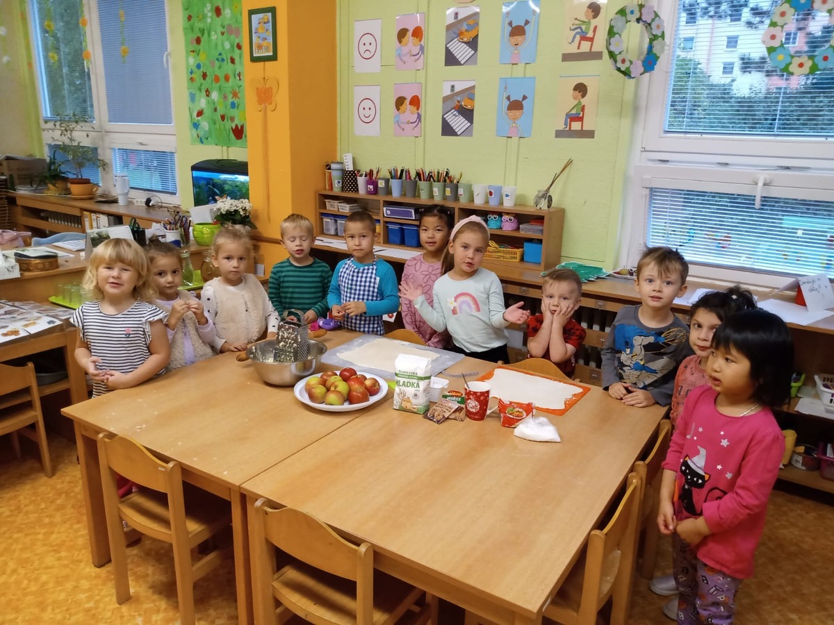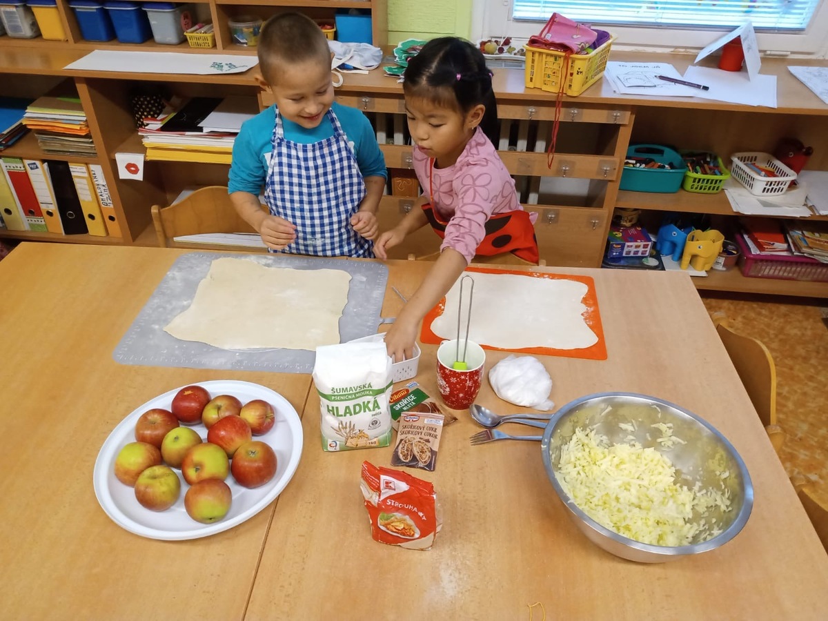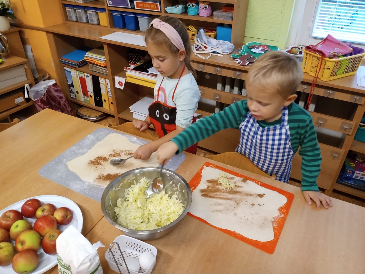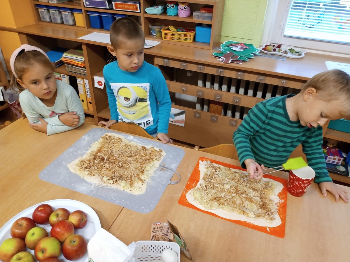 Děti ze Žlutého motýlku si upekly štrůdl z domácích jablíček donesených od rodičů.