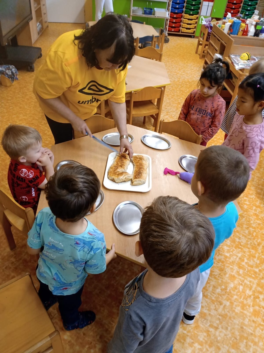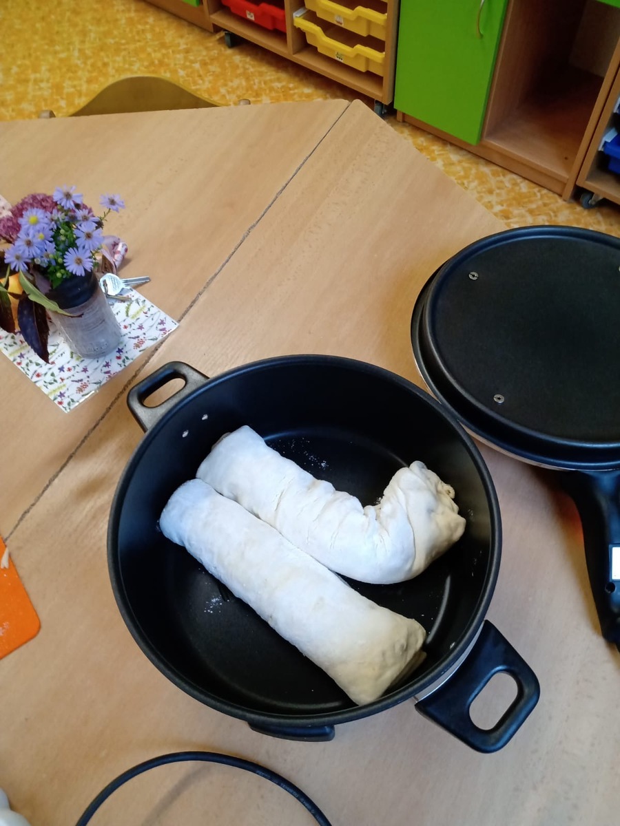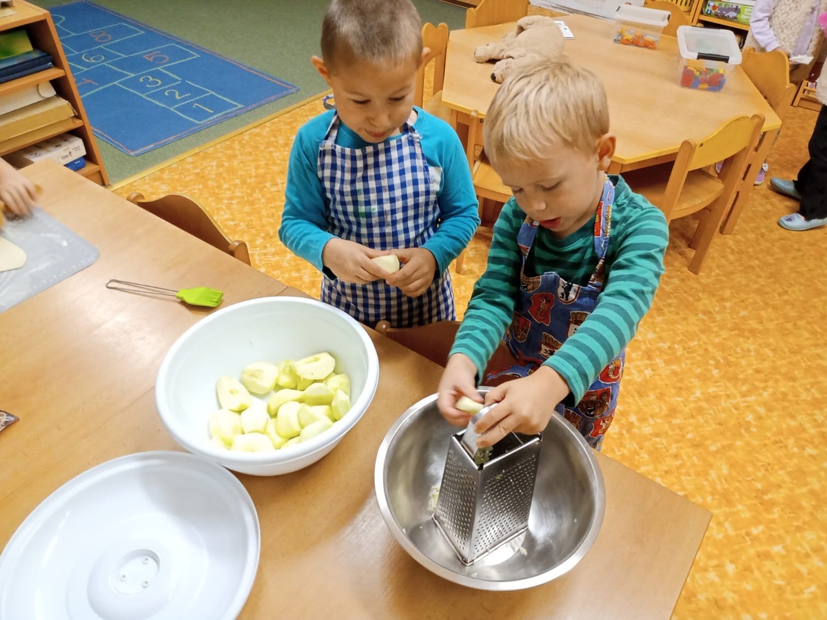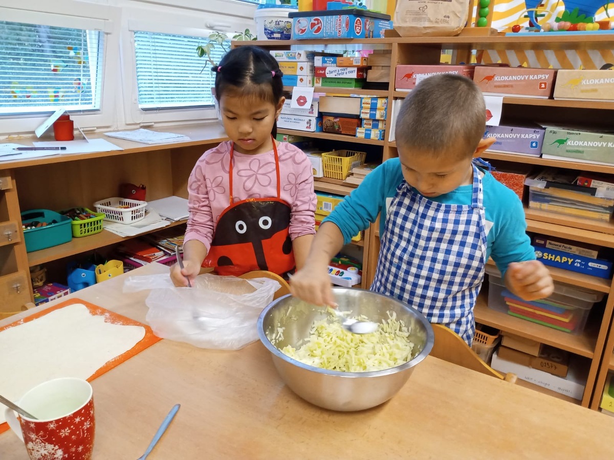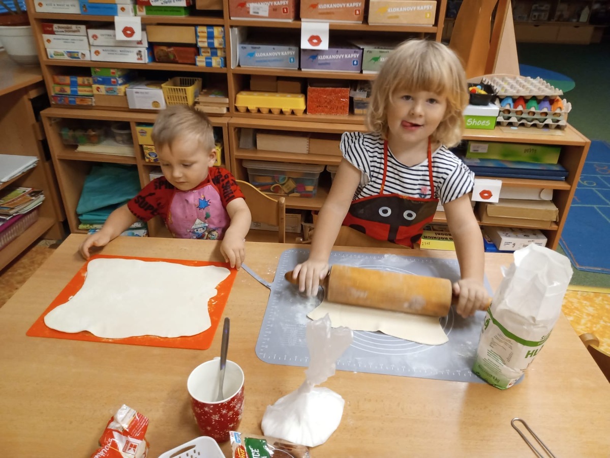 Děti ze Žlutého motýlku si upekly štrůdl z domácích jablíček donesených od rodičů.