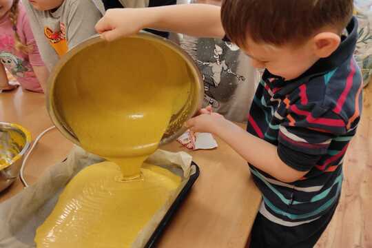 Ve středu 23. listopadu 2022 jsme v rámci projektu pekli a vařili. Během dopoledne si děti připravily těsto na chutné dýňové řezy, které nám paní kuchařky upekly a kterými děti odpoledne pohostily rodiče. Odpoledne všichni spojili síly, nastrouhali mrkvičku na mrkvovou pomazánku a mrkvičkový salát s jablíčkem. Po dobré hostině byl i čas na společné hraní.