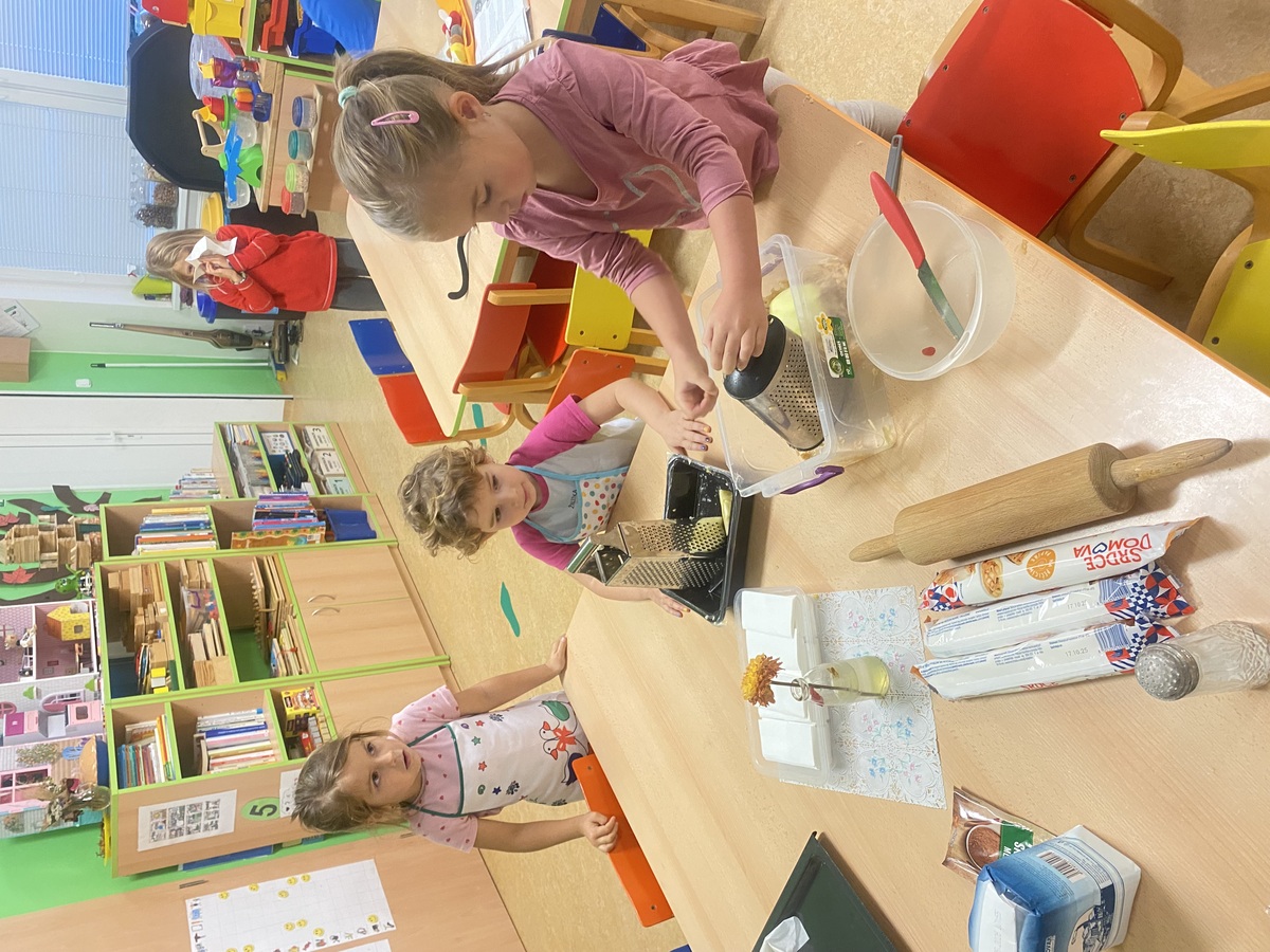 V naší školce jsme si v těchto dnech užili krásnou podzimní aktivitu – společné pečení jablečného štrúdlu. Děti si z domova přinesly vlastní jablíčka, která jsme společně okrojili, nastrouhali a připravili na náplň. Celá školka voněla skořicí, vanilkou a pečeným těstem. Děti se s nadšením zapojily do všech kroků – od válení těsta až po posypání hotového štrúdlu moučkovým cukrem. Nakonec jsme si na našem voňavém výtvoru všichni pochutnali. Bylo to milé a voňavé dopoledne plné spolupráce, radosti a podzimní pohody.