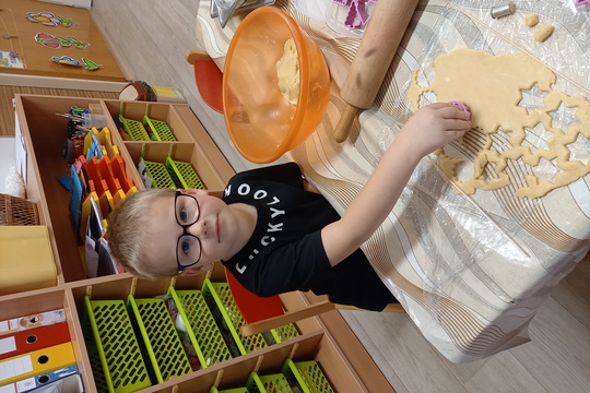 Děti z Motýlkové třídy připravovaly vánoční cukroví na posezení s rodiči. Paní kuchařky cukroví upekly. Foto: Vladimíra Jelínková Text a vložila: Veronika Bártová