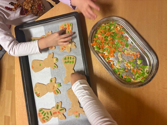 V předvánočním čase jsme se pustili do pečení perníků na vánoční jarmark, tentokrát ze špaldové mouky Probio. Děti se s nadšením zapojily do příprav těsta a vykrajování perníků přímo ve třídě, kde se společně ponořily do vánoční nálady. Na ochucení jsme použily perníkové koření Sonnentor, díky kterému se celým dnem linula krásná vůně Vánoc. Naše nejhodnější paní kuchařky nám pak perníky s láskou upekly ve školní kuchyni. Nejtěžším úkolem bylo ještě teplé perníky nesníst a uchovat je na jarmark – ale stálo to za to! Na vánočním jarmarku se totiž perníky staly jedním z nejoblíbenějších produktů a všichni si je pochvalovali.
