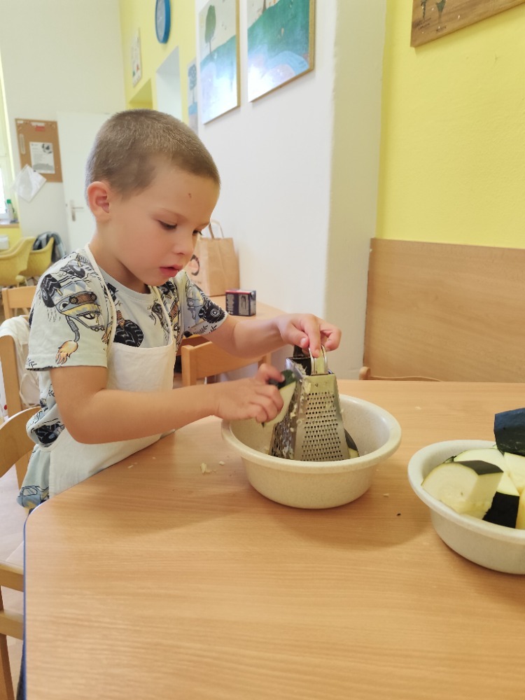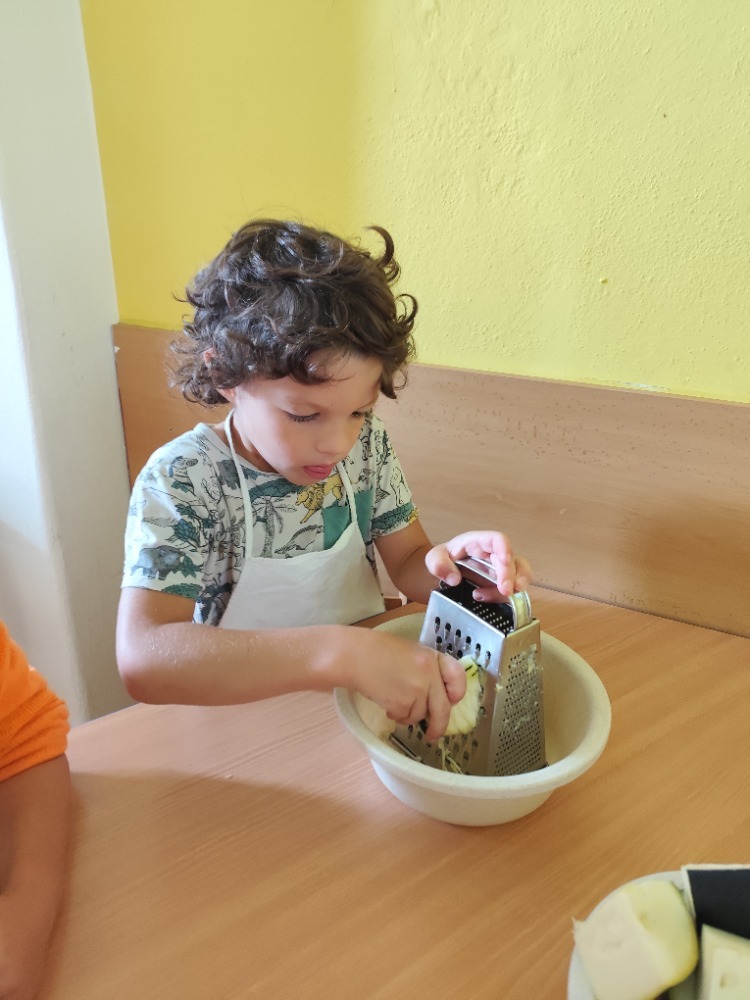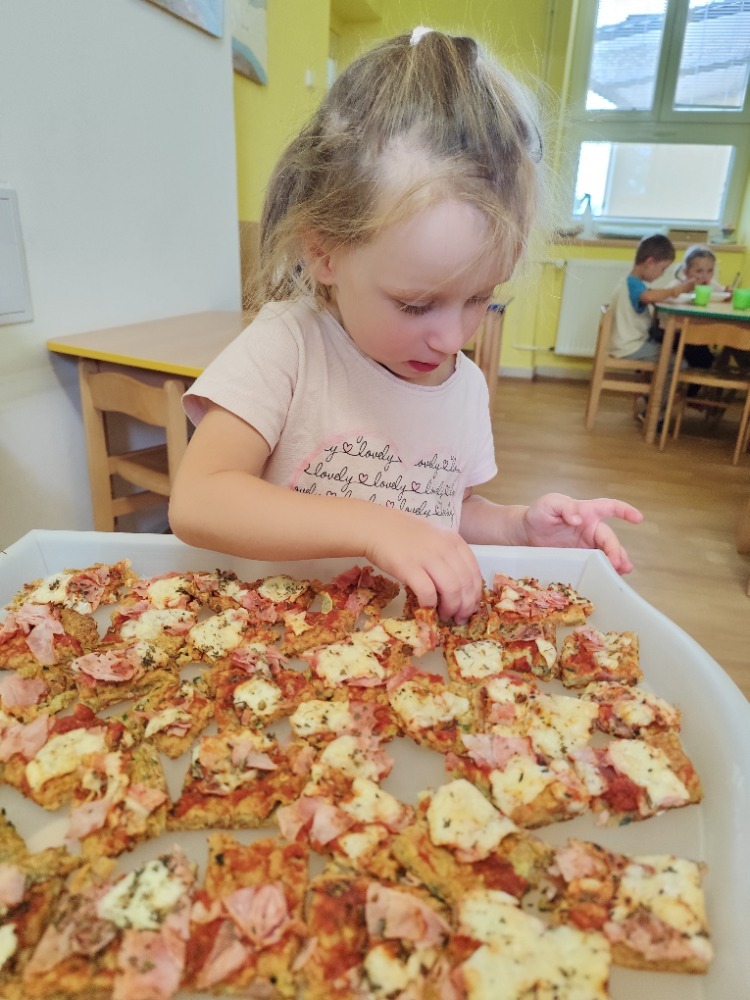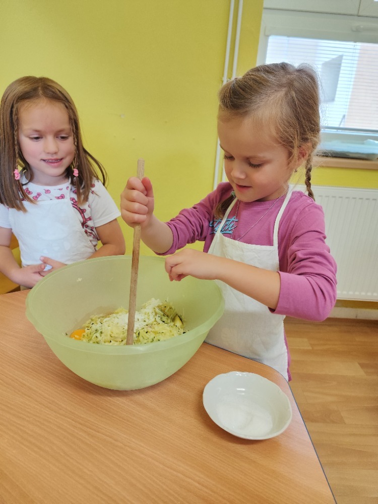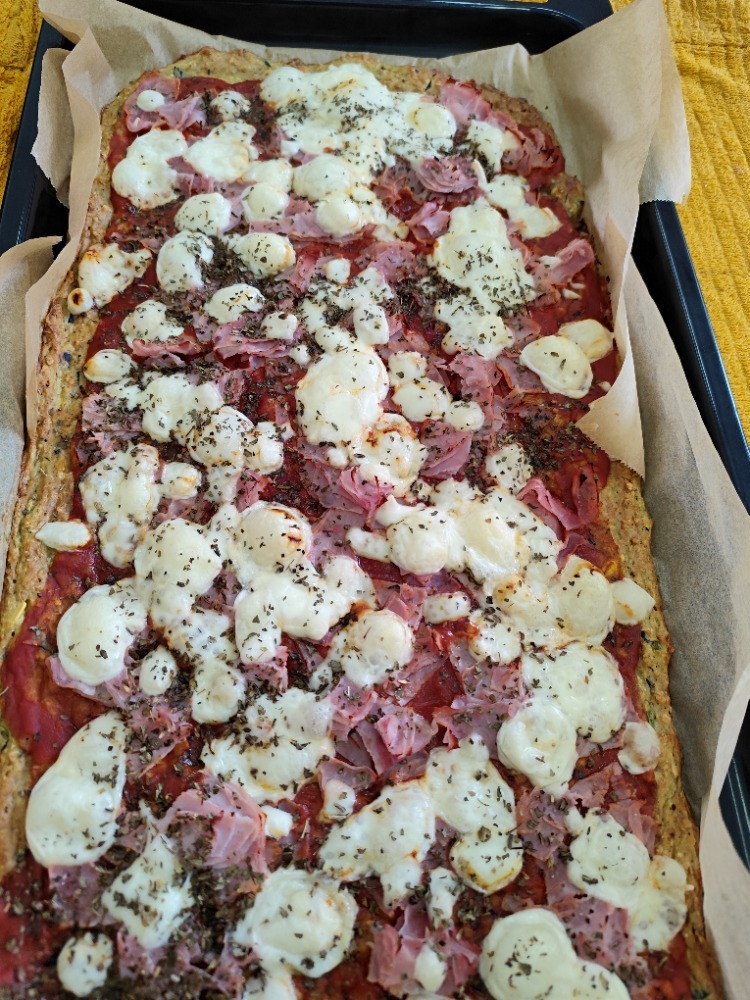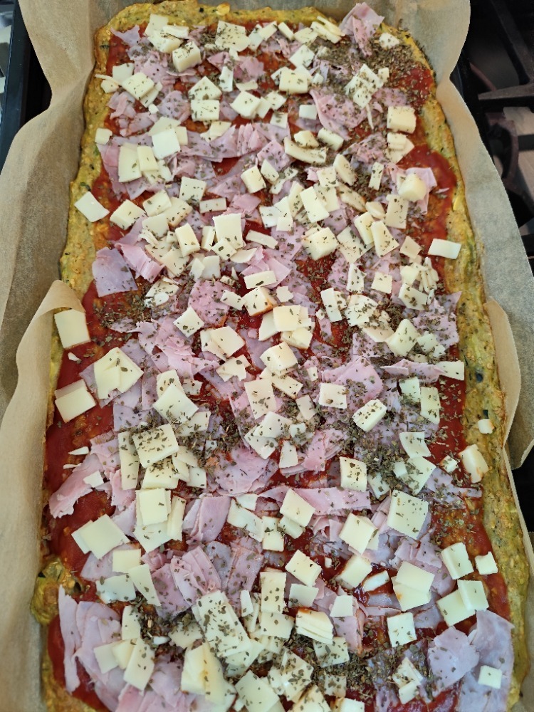 Už jste někdy slysěli o cuketové pizze? Ne? Tak my Vám ji rádi představíme. Stačí nastrouhat cuketu, přidat mouku, vločky a vajíčka. Přidat trochu česneku, sole a těsto máme hotové. Těsto jsme krásně rozprostřeli na plech a nechali ho v troubě upéct. Nakonec jsme pizzu polili domacím rajským protlakem, posypali sýrem a šunkou a cuketová pizza je na světě. A moc nám chutnala! Všem doporučujeme!