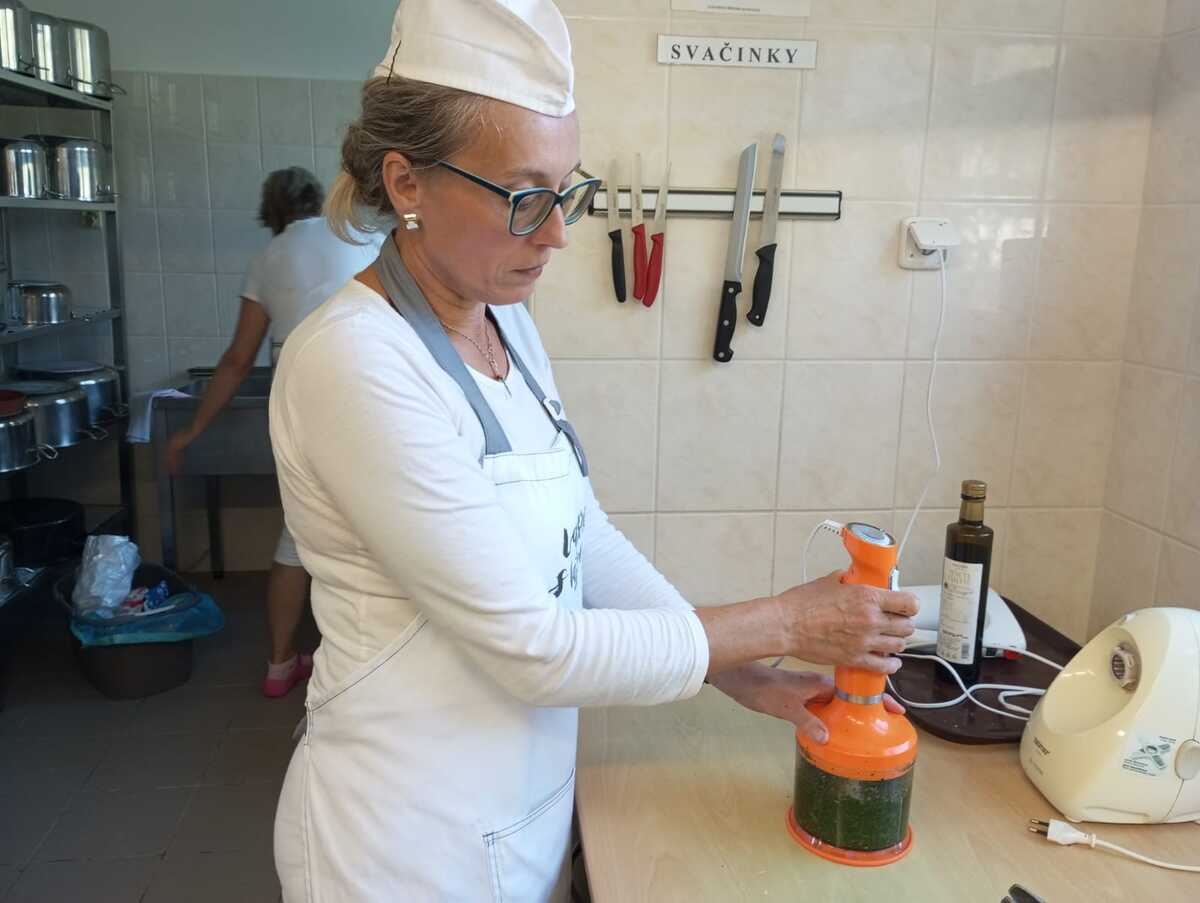 Mrkve máme v záhonku opravdu hodně a tak jsme se rozhodli, že využijeme mrkvovou nať na pesto, které pro nás s radostí připravila paní kuchařka. Použité ingredience: Mrkvová nať, olivový olej, slunečnicová semínka, česnek.