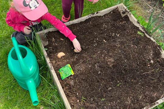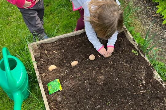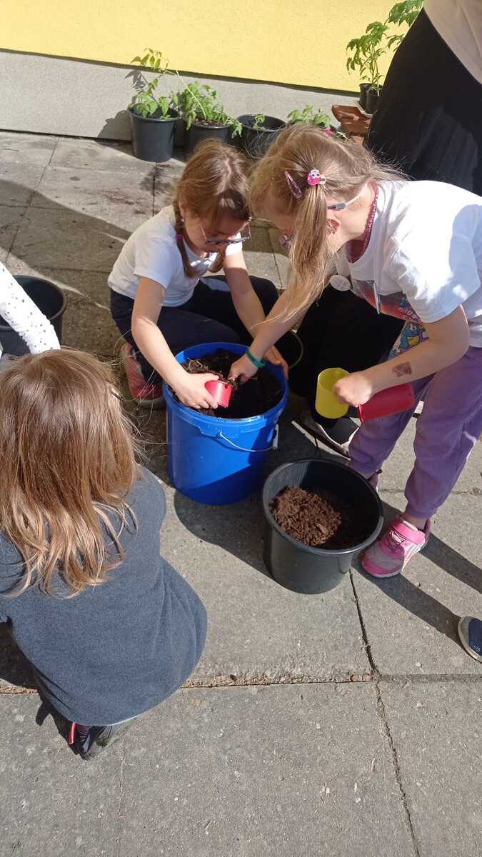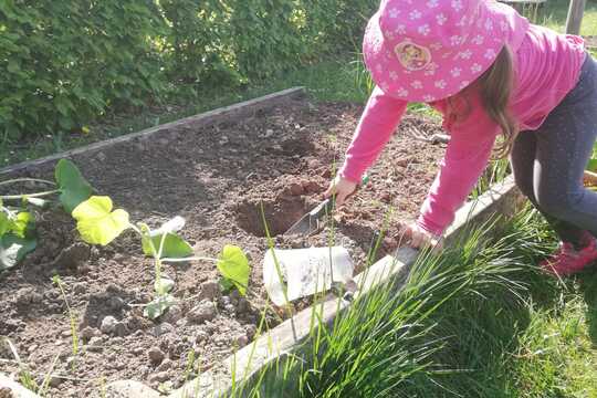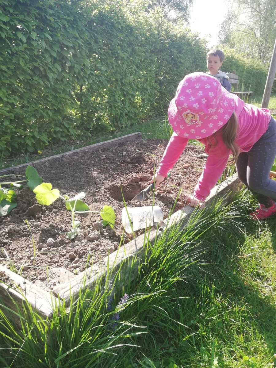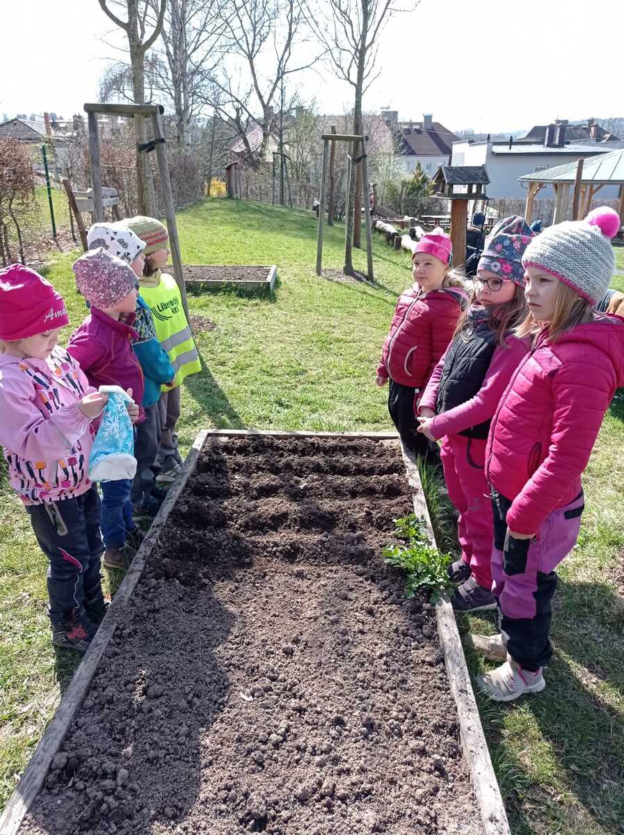 Sejeme, sázíme, přesazujeme, ryjeme, kopeme a zaléváme. Letos jsme do květináčků ve třídách vyseli bylinky, jahody, rajčata, papriky, cukety, dýně a přímo do záhonku ředvičky, hrášek a špenát. Zasadili jsme brambory a cibuli, do větších květináčů později zasadili vzrostlá rajčata, okurky a papriky, zasadili jsme už i dýně a cukety. Starší děti už jsou tak zdatní zahradníci, že pracují zcela samostatně a učí tak své mladší kamarády, kteří se do práce pouštějí s obrovským elánem. A rostlinkám se pod dětskýma rukama skutečně daří. Na školní zahradě využíváme k zalévání dešťovou vodu, které je ale letos jako šafránu. Zahrada ožívá a my se radujeme z první úrody, jednotíme ředkvičky a vyvazujeme hrášek. Už začínáme přemýšlet nad novými jídly, které si s dětmi připravíme. Děti si tak své rostlinky pěstují skutečně od semínka. Těšíme se na úrodu.