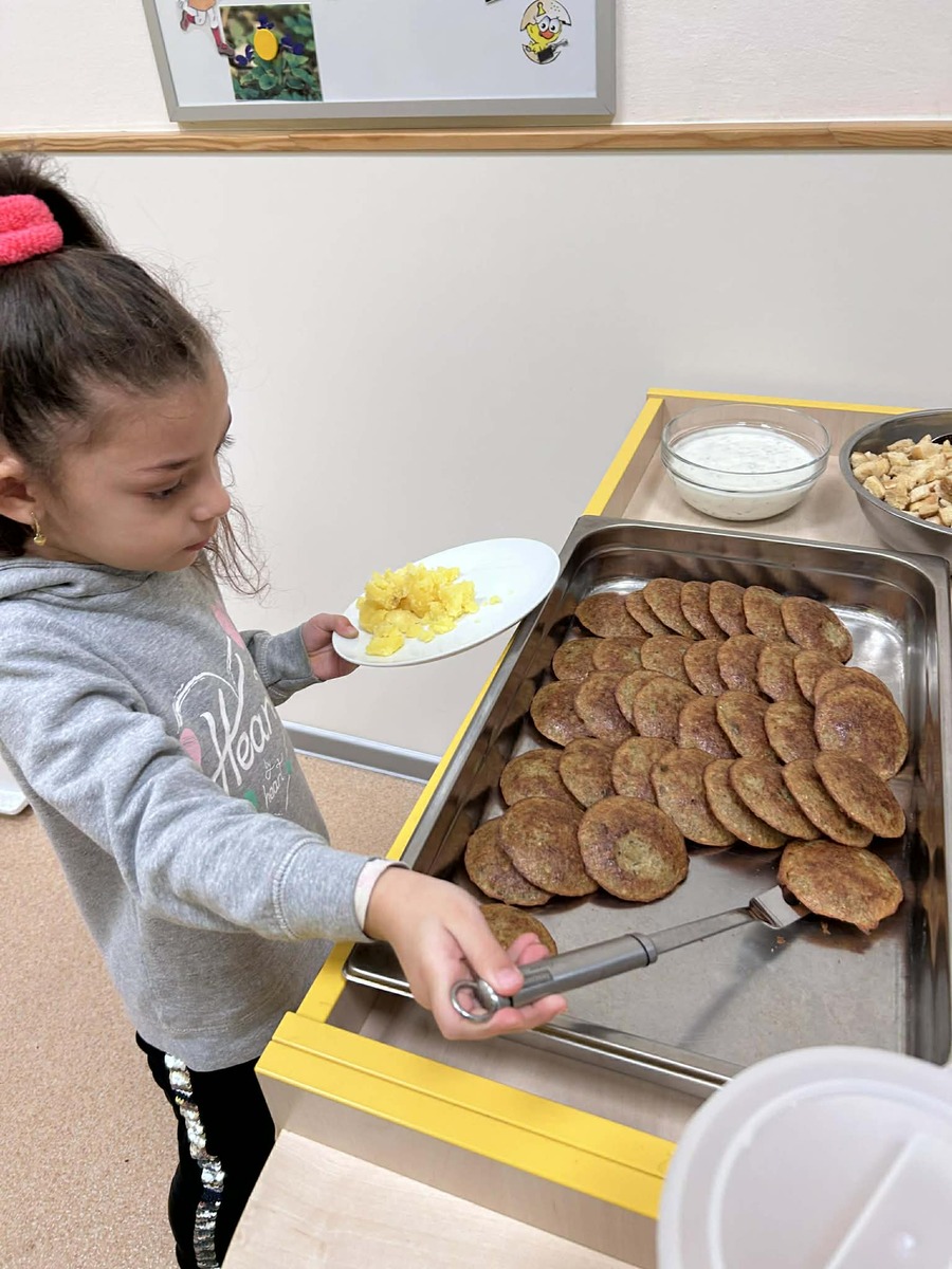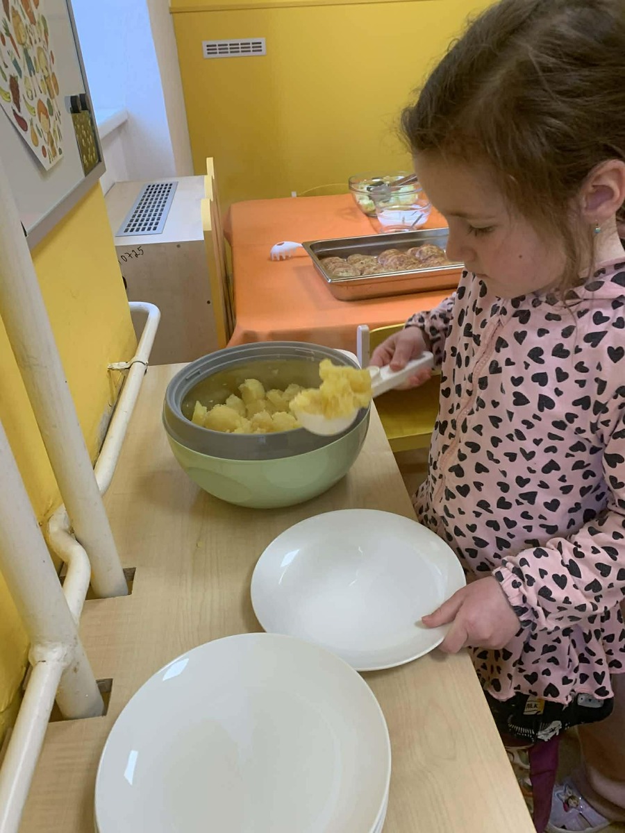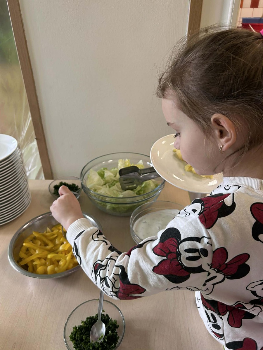 Postupně si zkoušely, kolik zvládnou, učily se zacházet s naběračkou a přemýšlet nad tím, co a kolik si naloží.