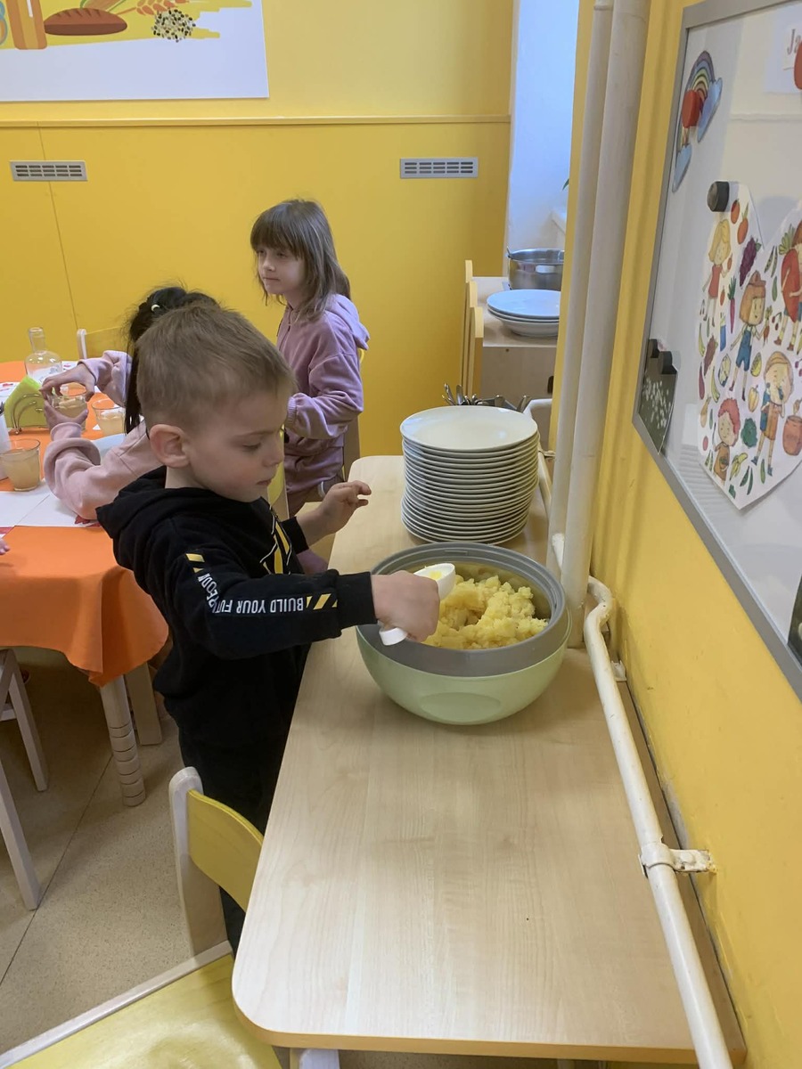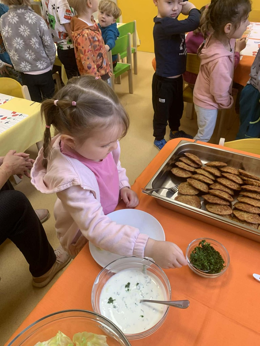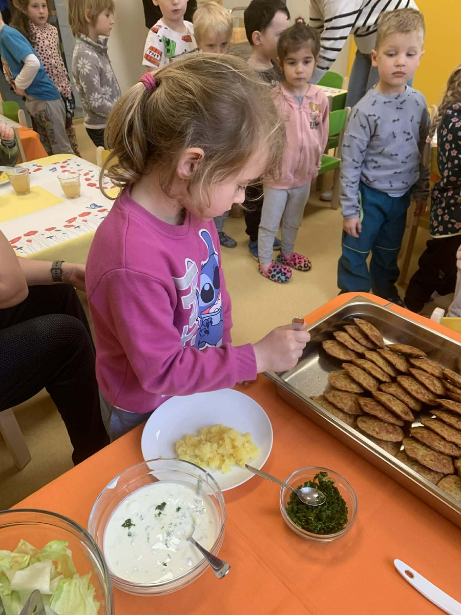 Postupně si zkoušely, kolik zvládnou, učily se zacházet s naběračkou a přemýšlet nad tím, co a kolik si naloží.