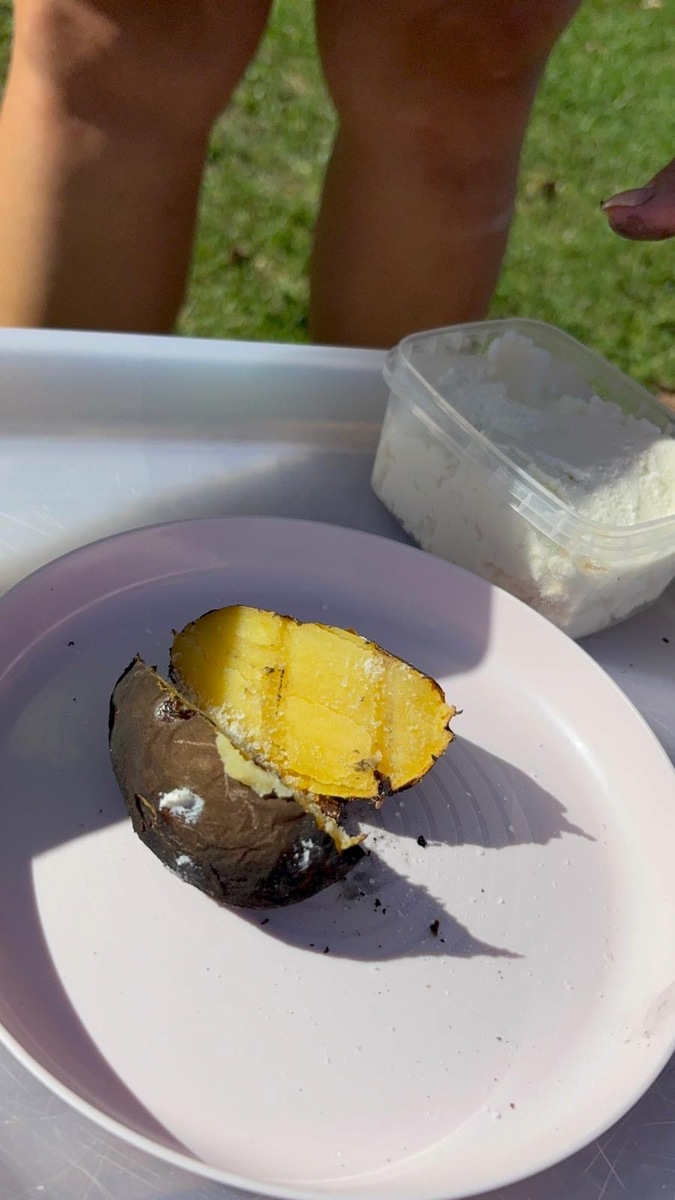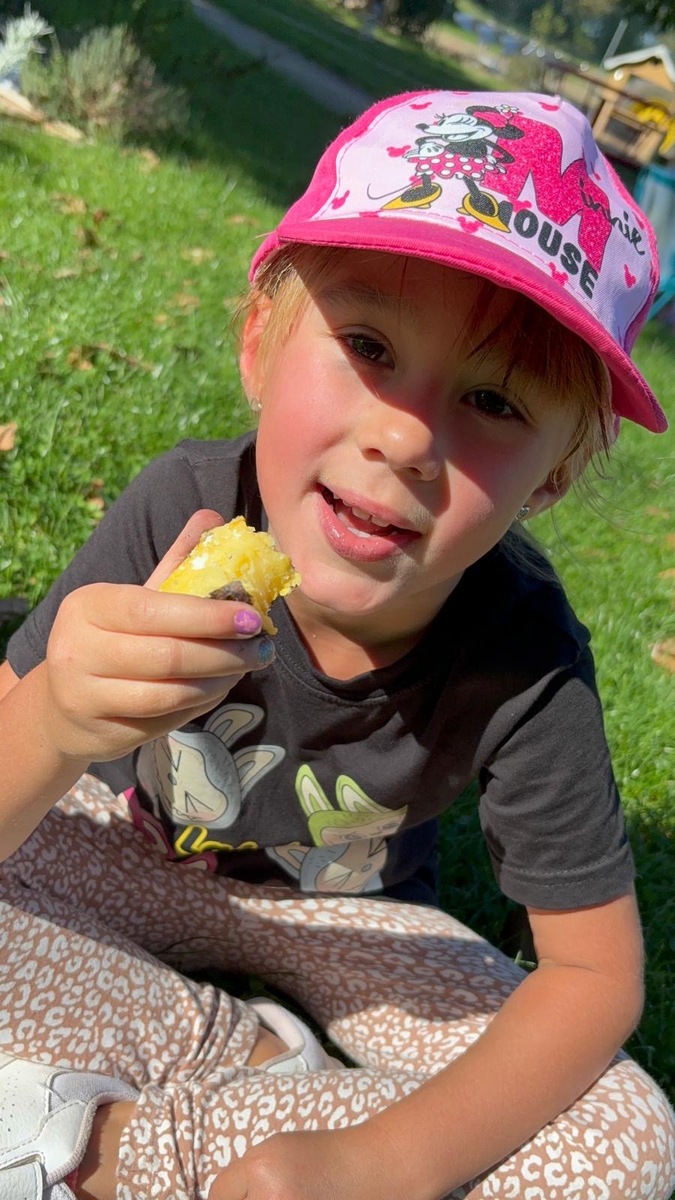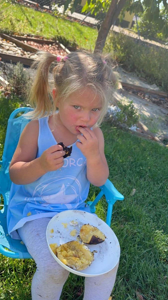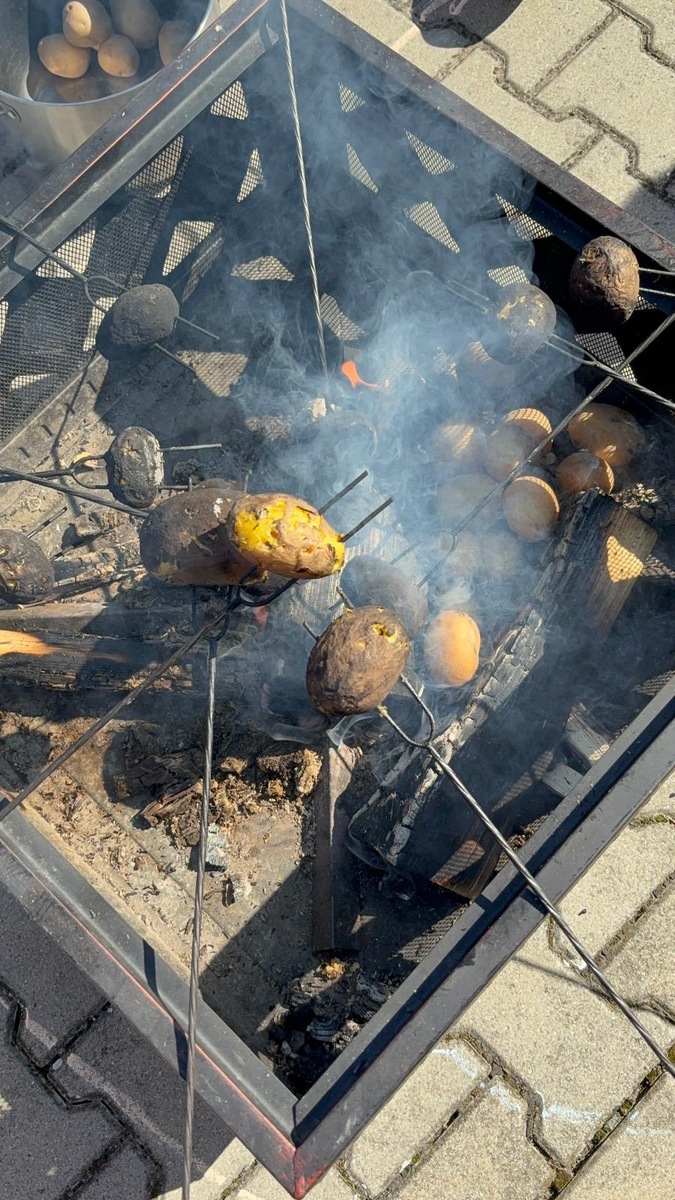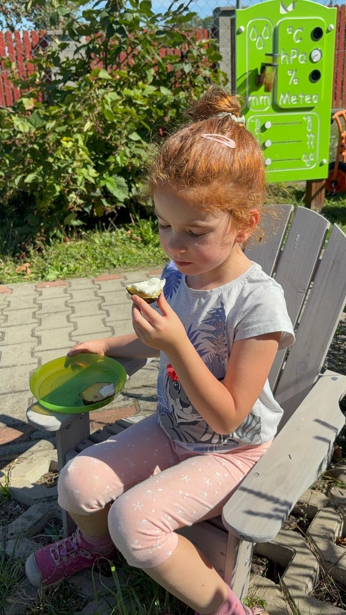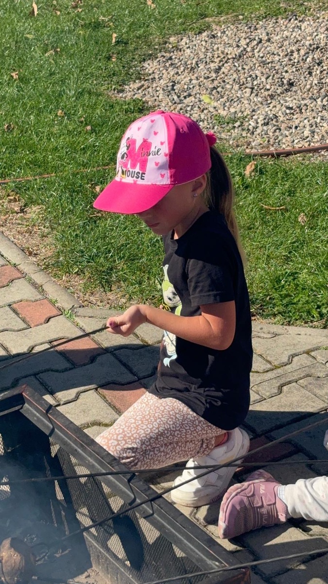 Dnes si děti v rámci tradičního českého podzimního pokrmu opekly lokální - vlastní brambory. Ty nám paní kuchařka obohatila o farmářský tvaroh. Venku nám chutná nejvíce.