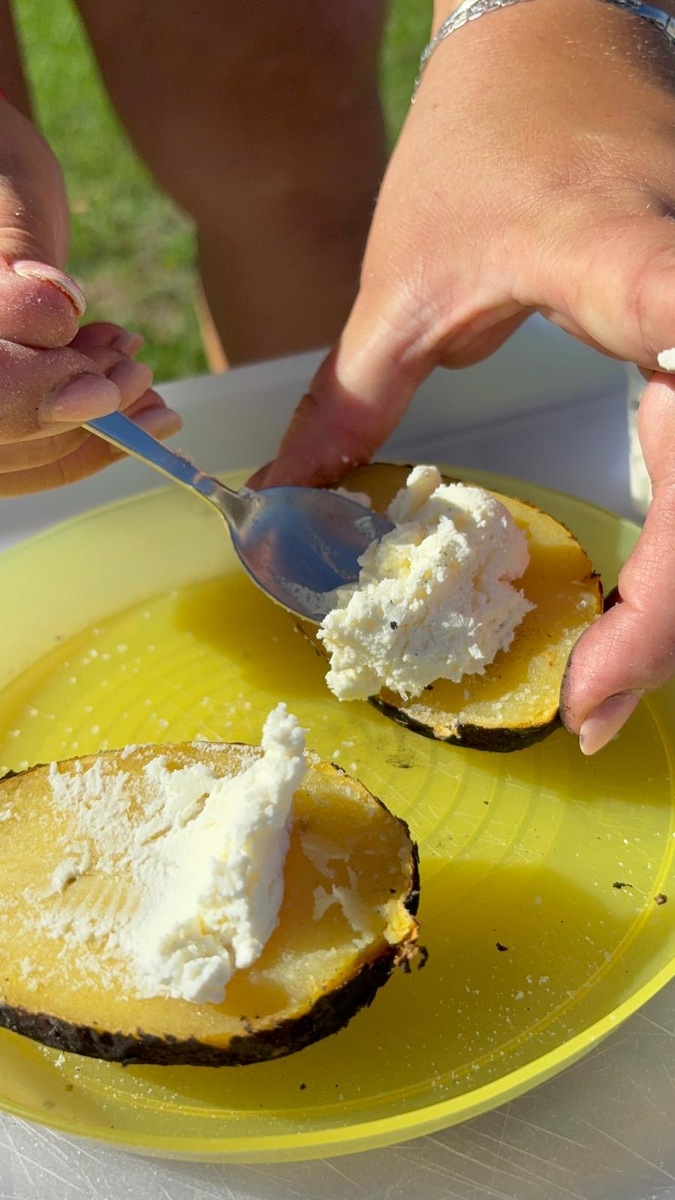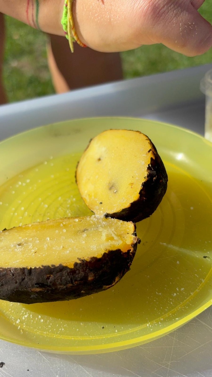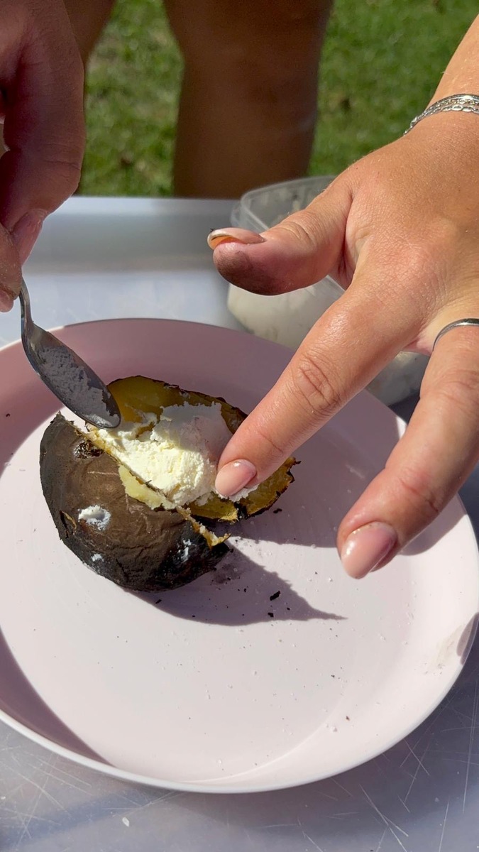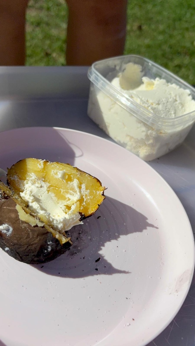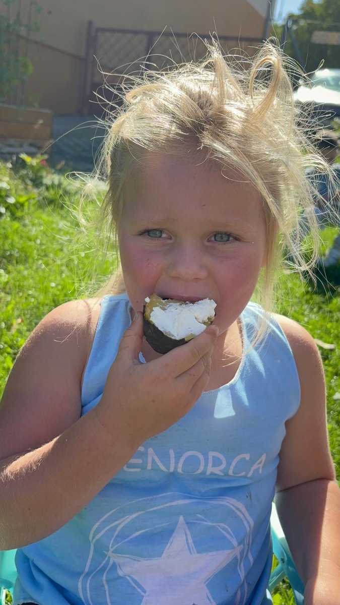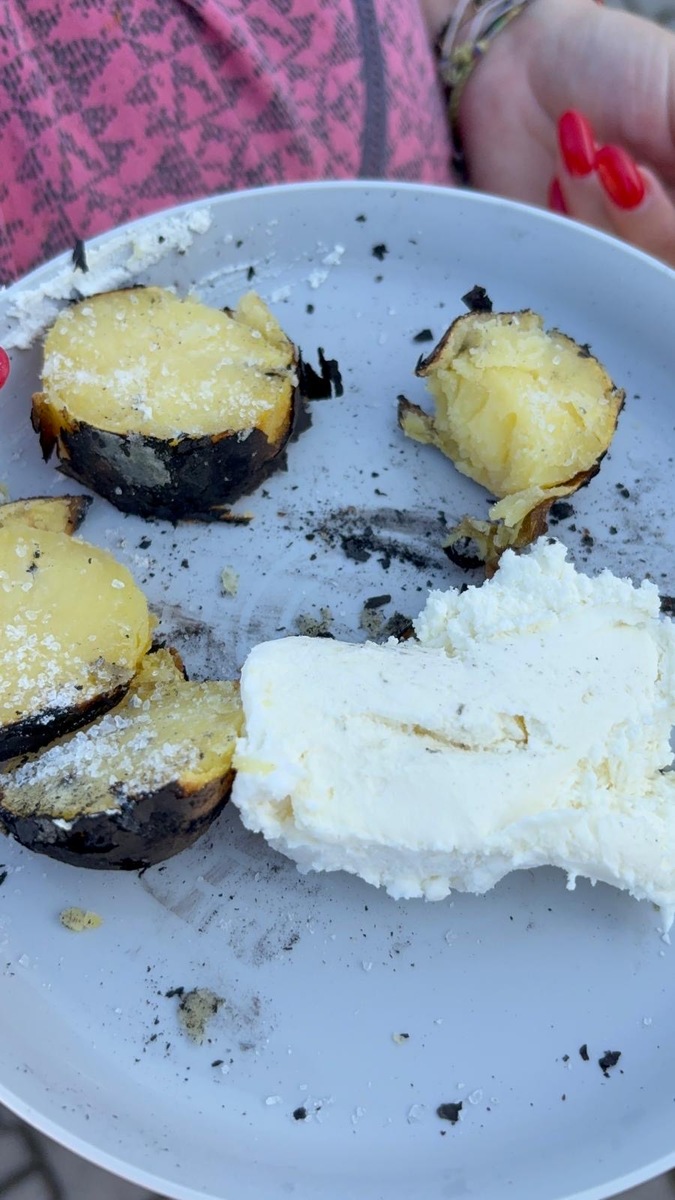 Dnes si děti v rámci tradičního českého podzimního pokrmu opekly lokální - vlastní brambory. Ty nám paní kuchařka obohatila o farmářský tvaroh. Venku nám chutná nejvíce.