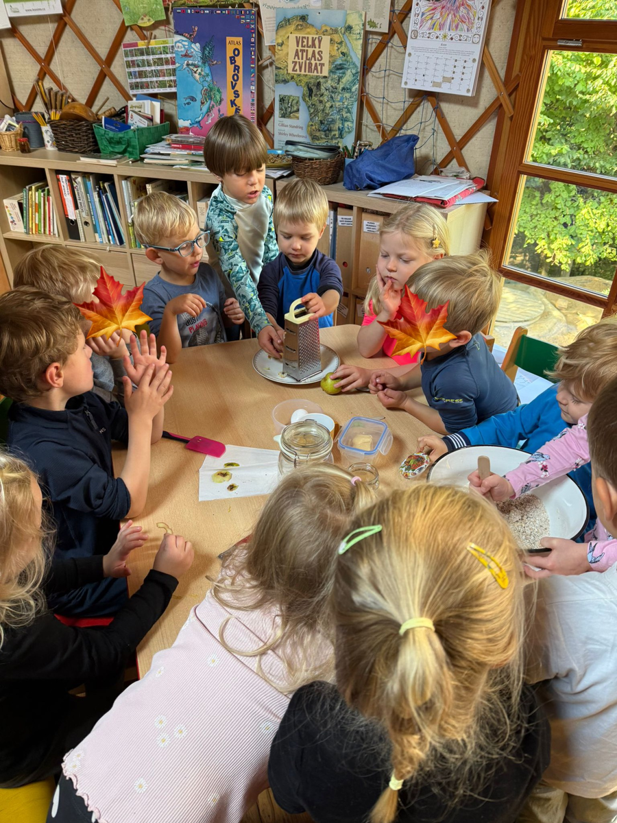 Na Pasece se sklízí a peče o sto šest. Dnes jsme s kamarády upekli ovesné sušenky, ale nebylo to jen tak! Namleli jsme na mlýnku obilniny na vločky, které jsme předtím koupili v bezobalovém obchodě a nastrouhali sklizená jablíčka ze školkové zahrady! Sušenky nám provoněly celé zázemí, mňam! :-)