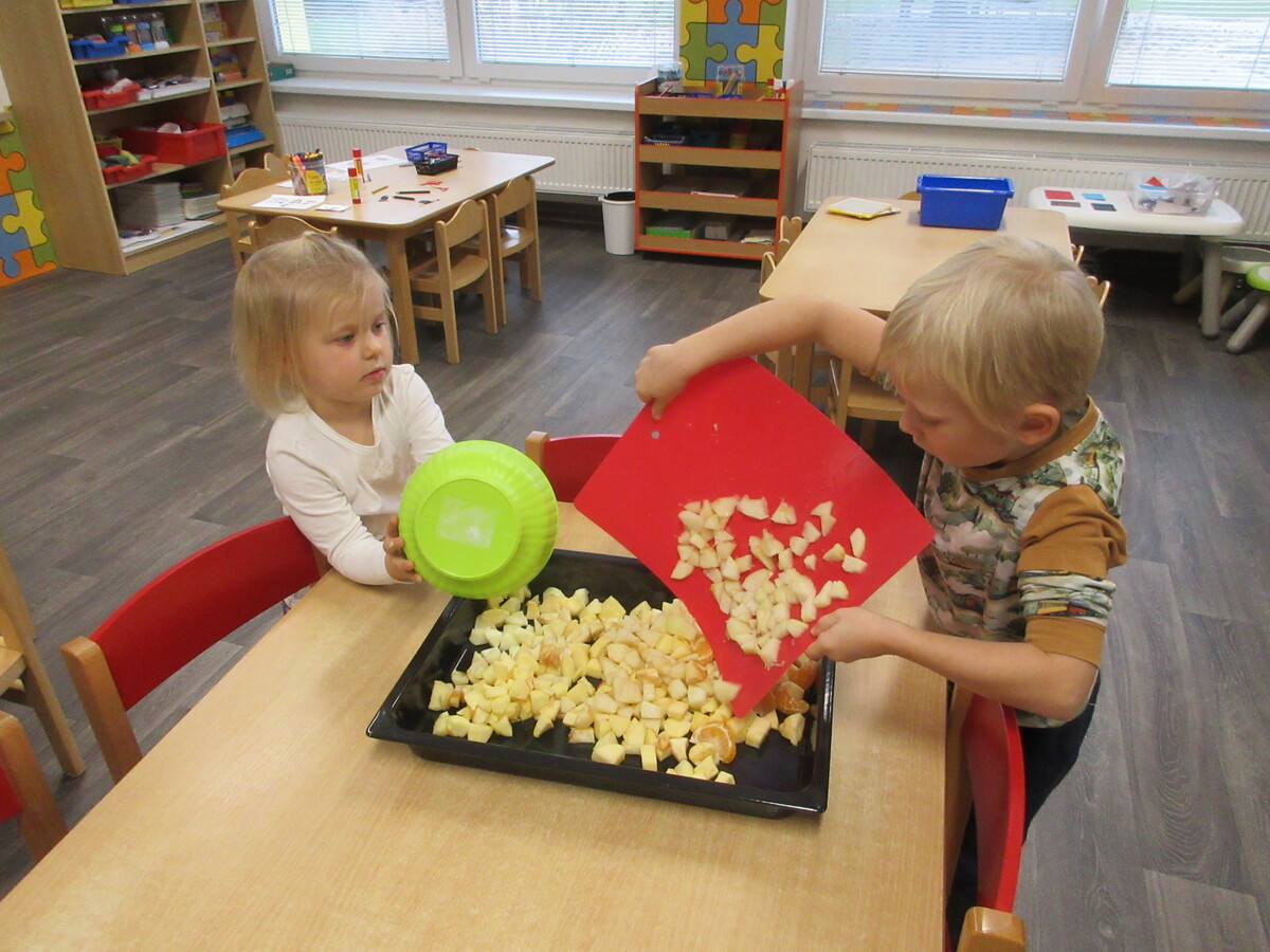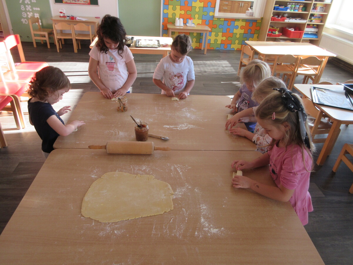 Vůně jablíček, koření a čerstvě upečeného cukroví se nesla třídou Beruška, kde se děti s nadšením pustily do pečení zdravých dobrot. Společně s paní učitelkami si nejprve připravily domácí jablečná povidla z pečených jablíček, která následně použily do křehkých šátečků. Další den zadělaly těsto na špaldové linecké cukroví – jeho příprava byla nejen zábavná, ale i poučná, protože se děti učily o zdravých potravinách a výživných surovinách. S radostí si vyzkoušely válení těsta, vykrajování tvarů i zdobení a s chutí ochutnaly výsledky své práce. Společné pečení se proměnilo v několik příjemných podzimních dní plných vůní, chutí a radosti ze společného tvoření.