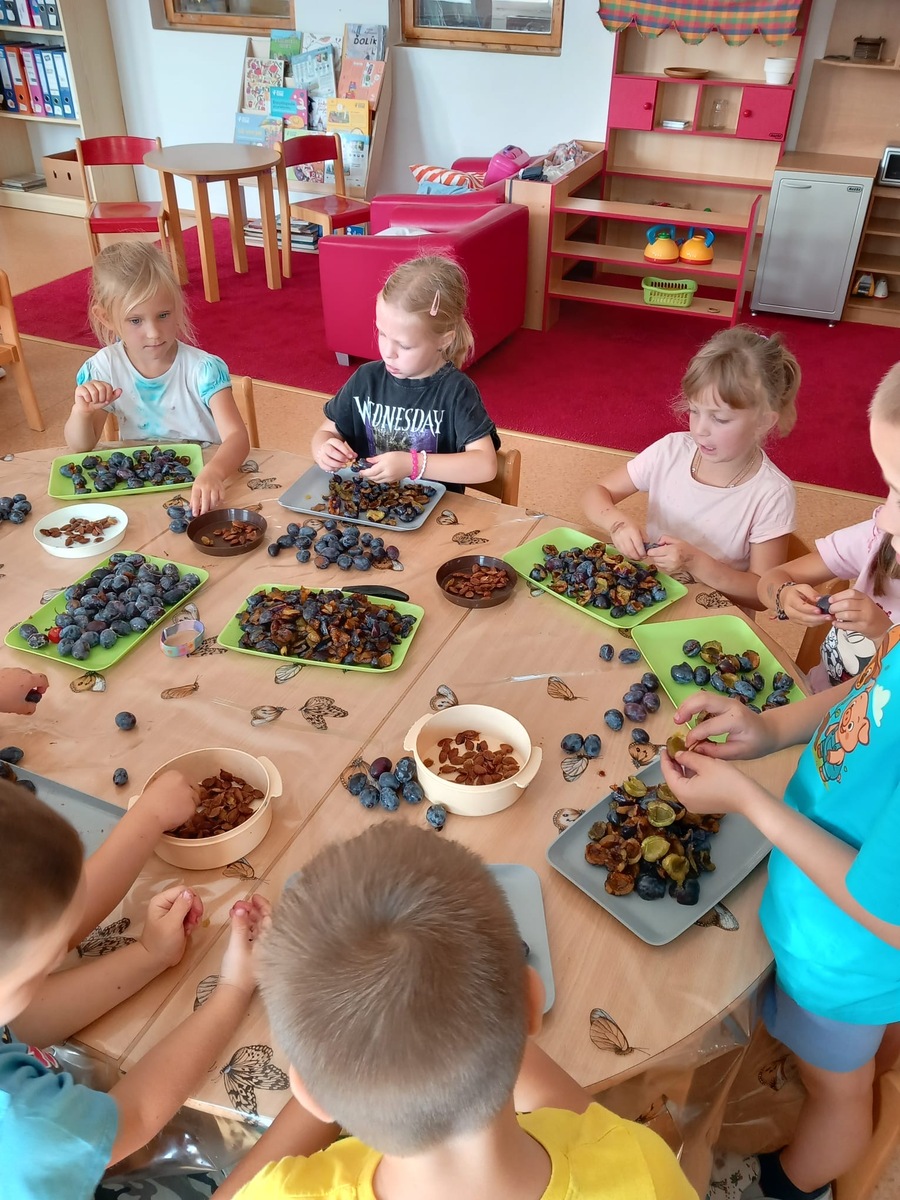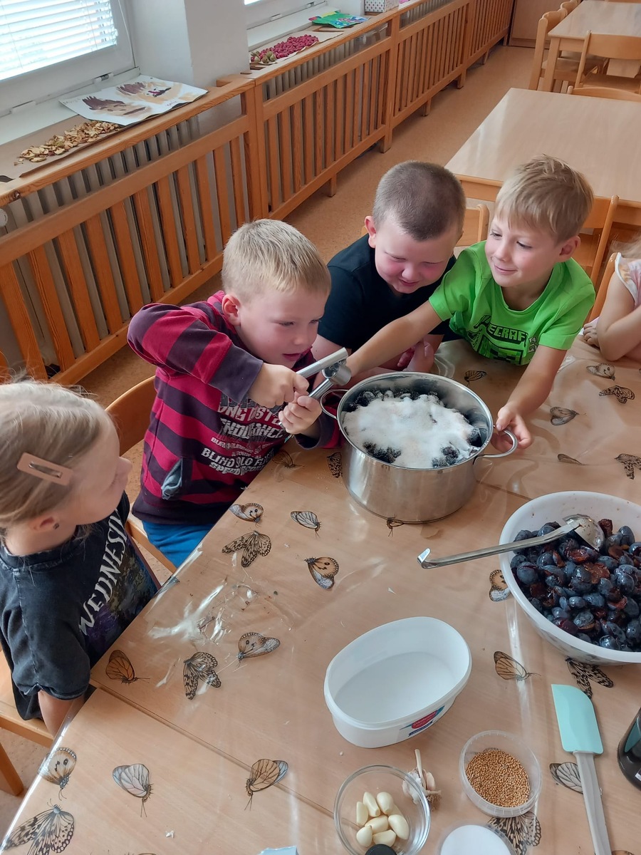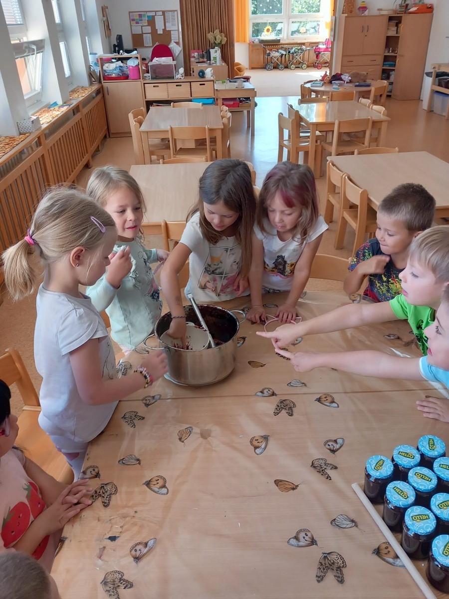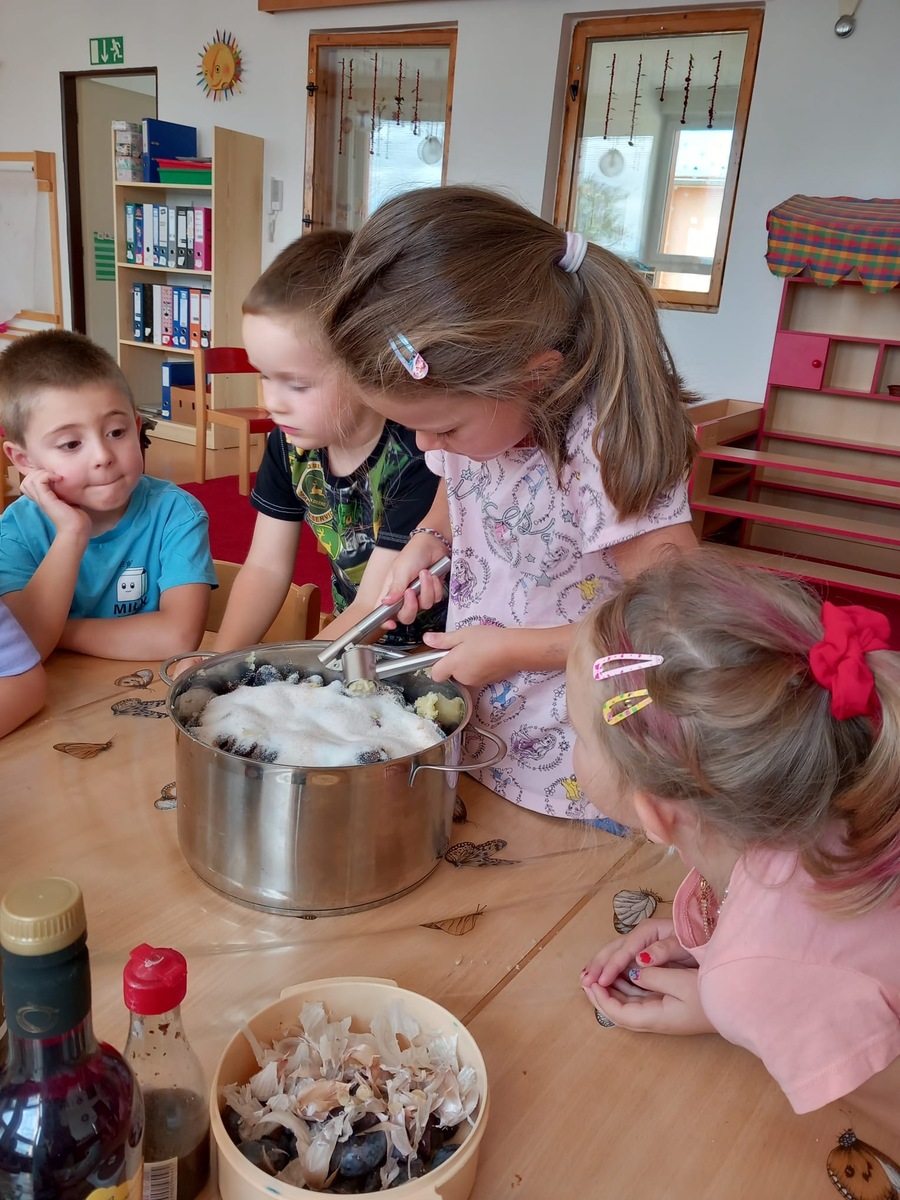 Naše děti si vyzkoušely, jak se ze švestek dá vykouzlit spousta dobrot. Nejprve nasbíraly švestky v nedalekém sadu, pečlivě je odpeckovaly a připravily k sušení. Část švestek pak společně zpracovali – děti pomáhaly při vaření marmelády i chutney, které později nabídnou na školkovém jarmarku.