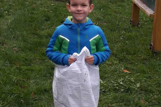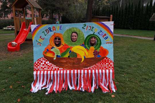 Požádali jsme rodiče a děti, aby nám do školky přinesli ovoce nebo zeleninu ze svých zahrádek a při této příležitosti jsme uspořádali podzimní slavnost na školní zahradě. Děti si mohly zasoutěžit na různých stanovištích, na některých si mohly vyzkoušet různé výtvarné techniky, mohly si vyrobit "ovocnou" čelenku nebo si mohly zaskákat v pytlích a zkusit závod s jablíčkem. Mezitím, co děti soutěžily, měli rodiče možnost ochutnat občerstvení, které přichystaly paní kuchařky z ovoce, které děti přinesly ze zahrádek. Paní kuchařky z ovoce připravily jablečný štrůdl a jablečný perník, ale také upekly zdravou zeleninovou pizzu. Soutěže i občerstvení mělo velký úspěch a celou slavnost jsme zakončili společným tanečkem rodičů s dětmi.