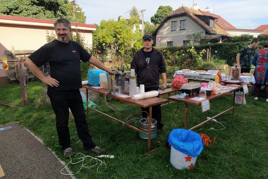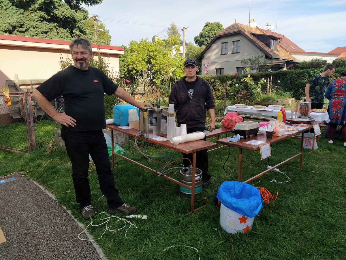 Léto je pryč a my jsme ve čtvrtek 23.9. uspořádali další ročník Podzimních slavností. Pozvali jsme regionální výrobce z širokého i blízkého okolí. Sešlo se jich požehnaně. Bylinné čaje od Haničky https://bylinkove-caje-od-hanicky.webnode.cz pekarna Jarca Orel Duhová kočka a pruhovaný kocour https://duhovakocka.cz Epifany Patisserie Zajecice https://epifany-patisserie.cz Milan Novotny farma Mezihori https://noveko.webnode.cz pivovar Medlešice www.medlesice.cz dýně a česnek Jan Vávra Zahrada na Korunce prirodnizahrada.eu/portfolio/zahrada-na-korunce Minimlékárna Juliana www.mlekarnajuliana.cz Jsem Pecka sirupy https://jsempecka.cz Akce začala vystoupením dětí z MŠ. Následovalo představení regionálních výrobců. Nabízely se grilované sýry, bramborové noky s uzeným masem a kysaným zelím, párek v rohlíku, mošt od dětí z MŠ. Pro malé i velké navštěvníky byla připravena tvořivá dílnička. Kdo si přinesl draka, mohl si ho na louce za školkou pustit. 6 hospodyněk se zapojilo do soutěže o nejlepší sladký koláč. Vše proběhlo v pohodové a poklidné atmosféře. Návštěvníci odcházeli s výrobky nejen od našich prodejců, ale i s malými drobnostmi, co pro ně připravily v rámci center aktivit naše děti (slané a sladké sušenky, bylinkové čaje,..). Všem děkujeme za přípravu a účast.
