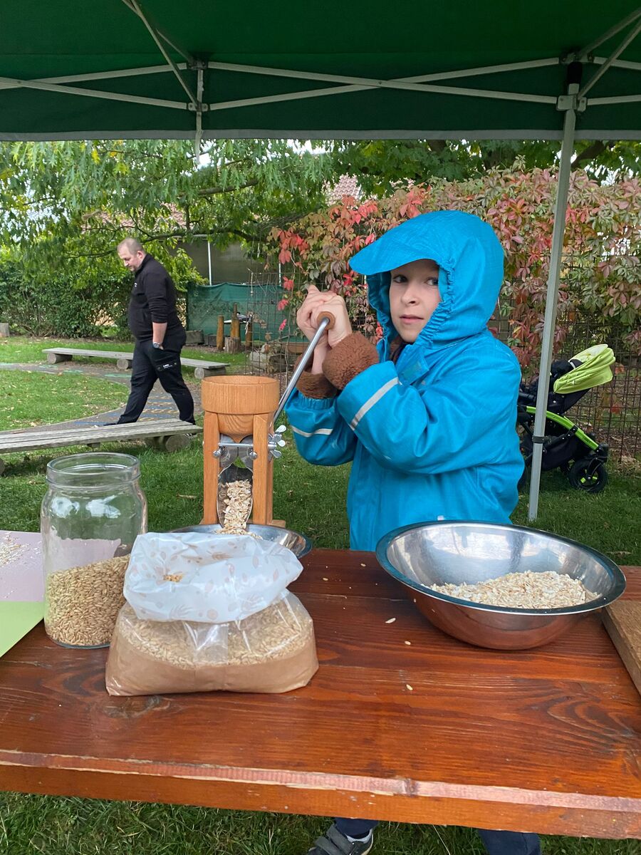 Podzim pomalu převzal vládu od léta, a tak jsme jako každý rok uspořádali na zahradě naší školky oblíbené Podzimní slavnosti. Vedle mnoha báječných lidiček nás navštívila pohádka s názvem Jak šlo zrnko do světa, v rámci které jsme se všichni dozvěděli spoustu užitečných informací o obilí, jež jsme si tu pak namleli a vzápětí z něj upekli lahodné sušenky. Dále jsme od společnosti www.alchymista.online získali spoustu zajímavých poznatků o bylinkových čajích, které bylo možno zároveň i zakoupit. Maminky si zasoutěžily o nejlepší podzimní koláč a v závěru večera jsme svoje chuťové pohárky potěšili kotlíkovou dýňovou polévku.