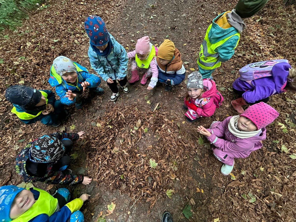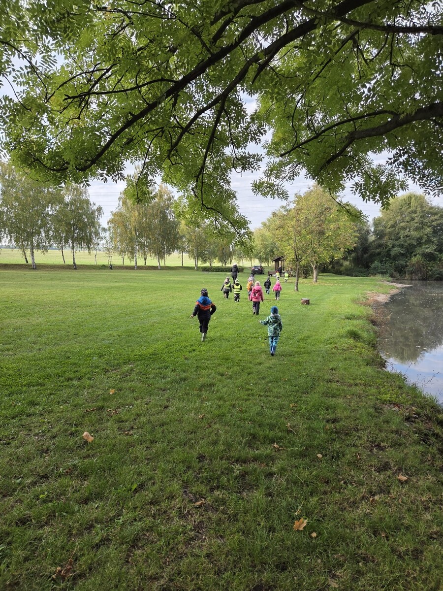 Střípky z dnešního výletu – všude kolem nás samá krásná příroda, zajímavé úkoly a spousta legrace. Po splnění všech úkolů si děti vychutnaly svačinku u rybníka, pak se procházkou vrátily zpět do školky. Po obědě panovalo velké ticho – všechny naše broučky výlet opravdu zmohl.