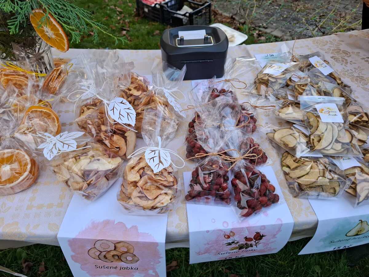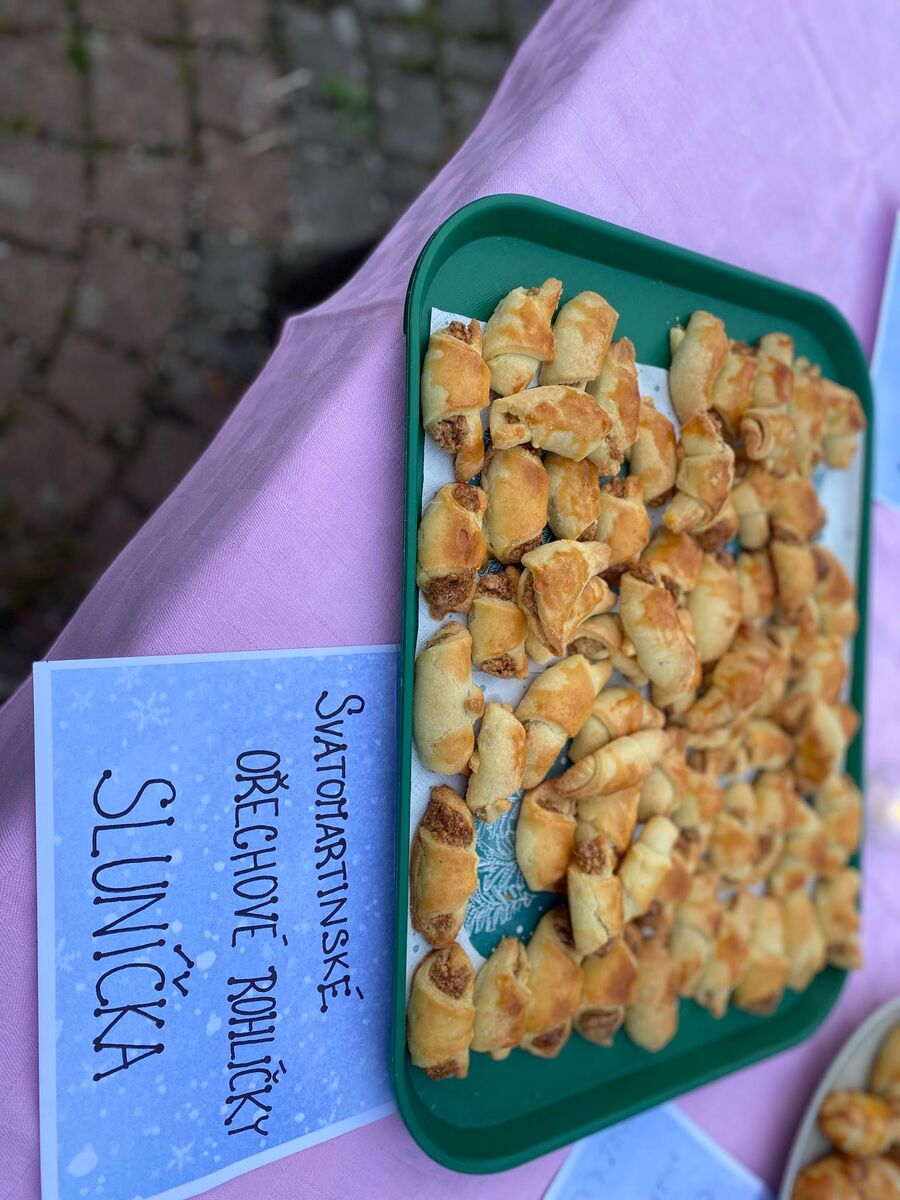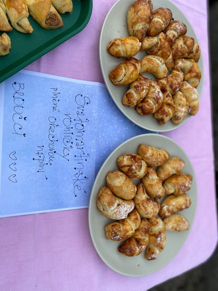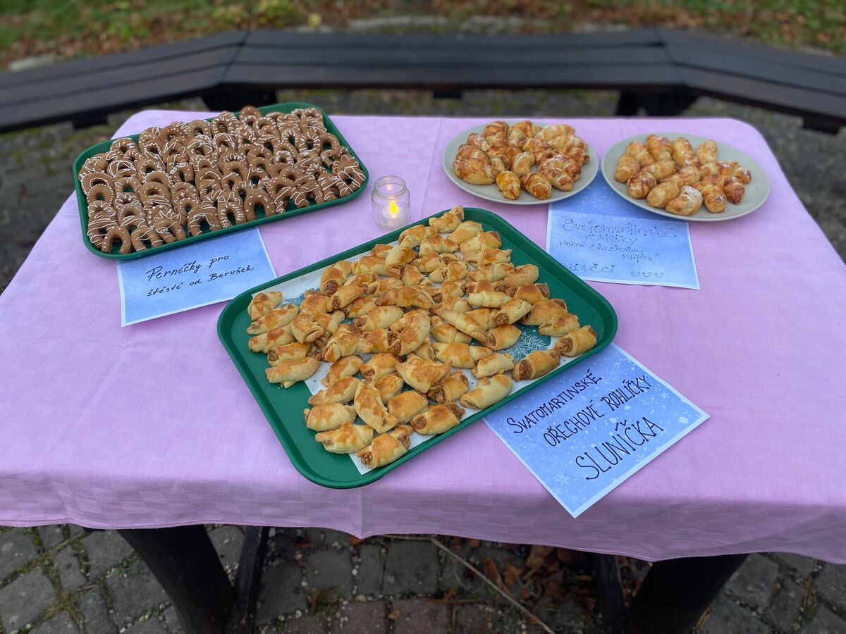 Na stolech nechyběly sirupy, pesta, přesnídávky, marmelády, okurky, kečupy, sušené ovoce ani kysané zelí, které děti vyšlapaly s opravdovým nadšením. Každá třída přidala svou buchtu nebo zákusek, a ty mizely rychleji než světýlka po lampionovém průvodu.