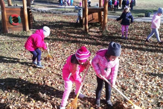 Naši školní zahradu jsme společnými silami připravovali na zimní spánek. Pomáhali rodiče, děti i paní učitelky a k tomu jim pěkně svítilo sluníčko.