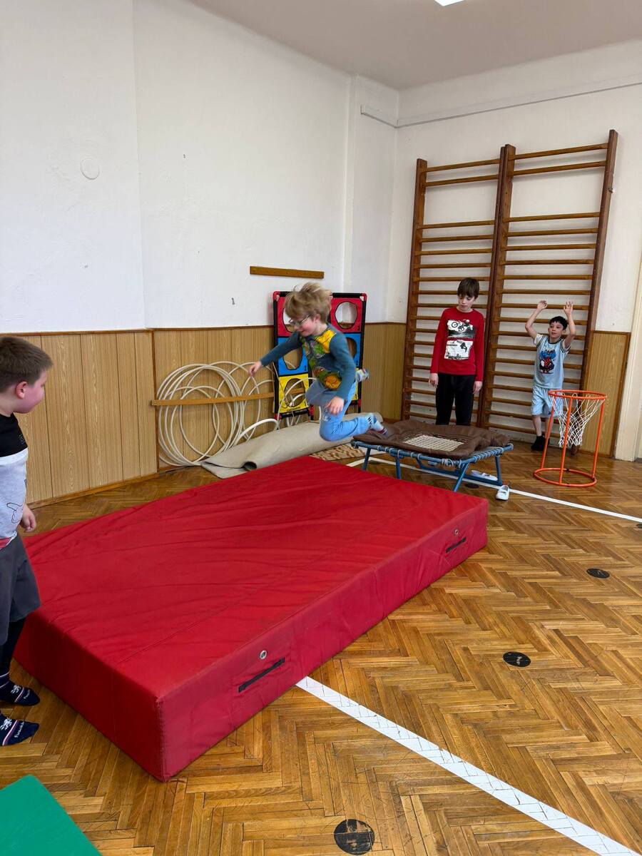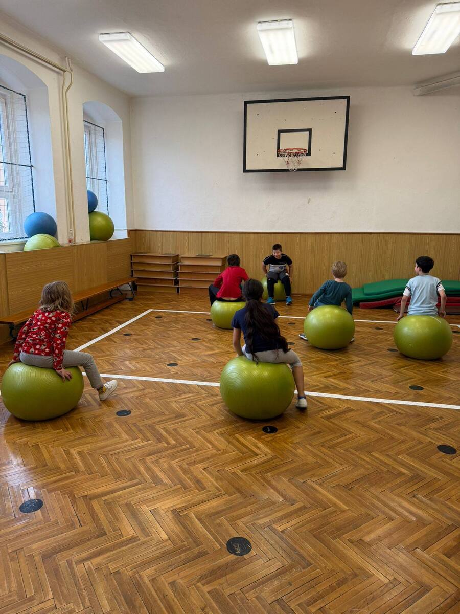 Volnočasová aktivita - pohybová hodinka, při které jsme se rozcvičili, zahráli štronzo, vybíjenou a na závěr si děti postavily vlastní opičí dráhu.