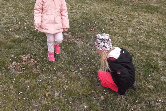 Na školní zahradě nám vyrostli sedmikrásky. Společně jsme je otrhali a ozdobili si s nimi výbornou špenátovou polévku.