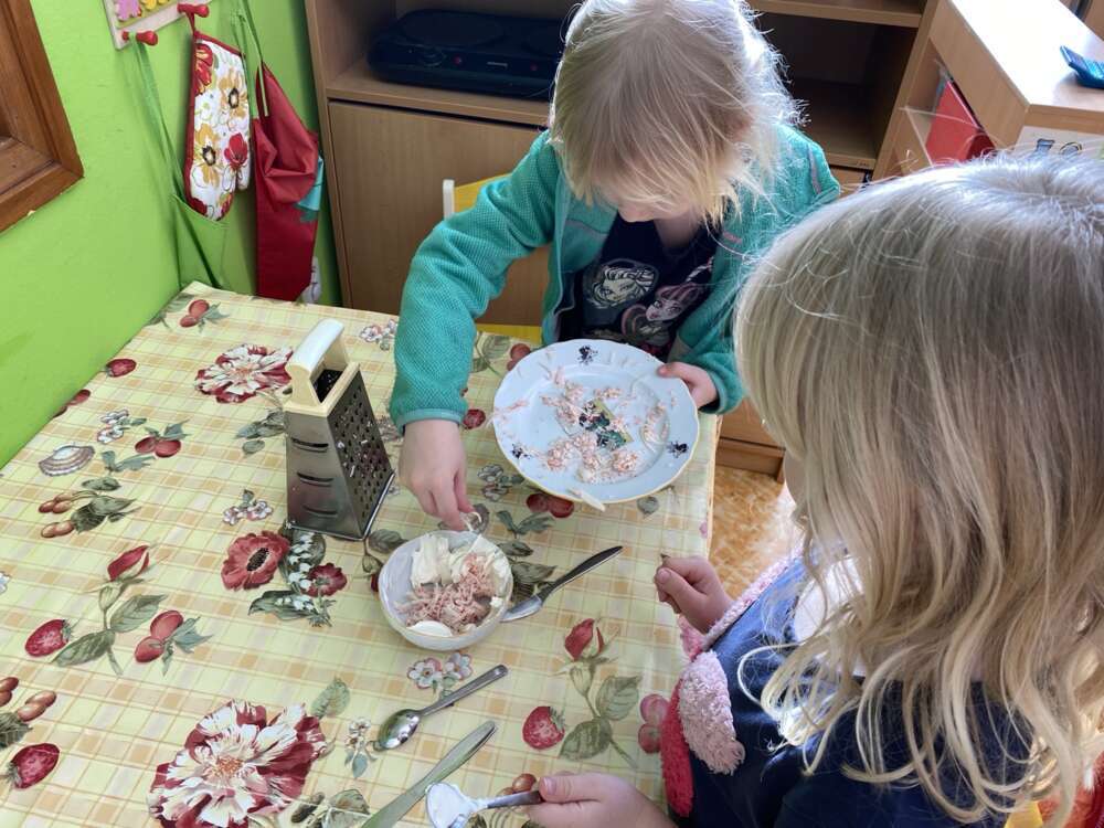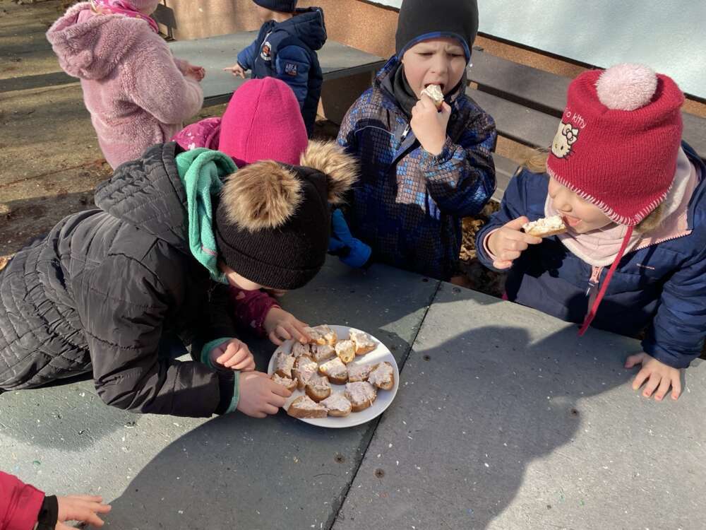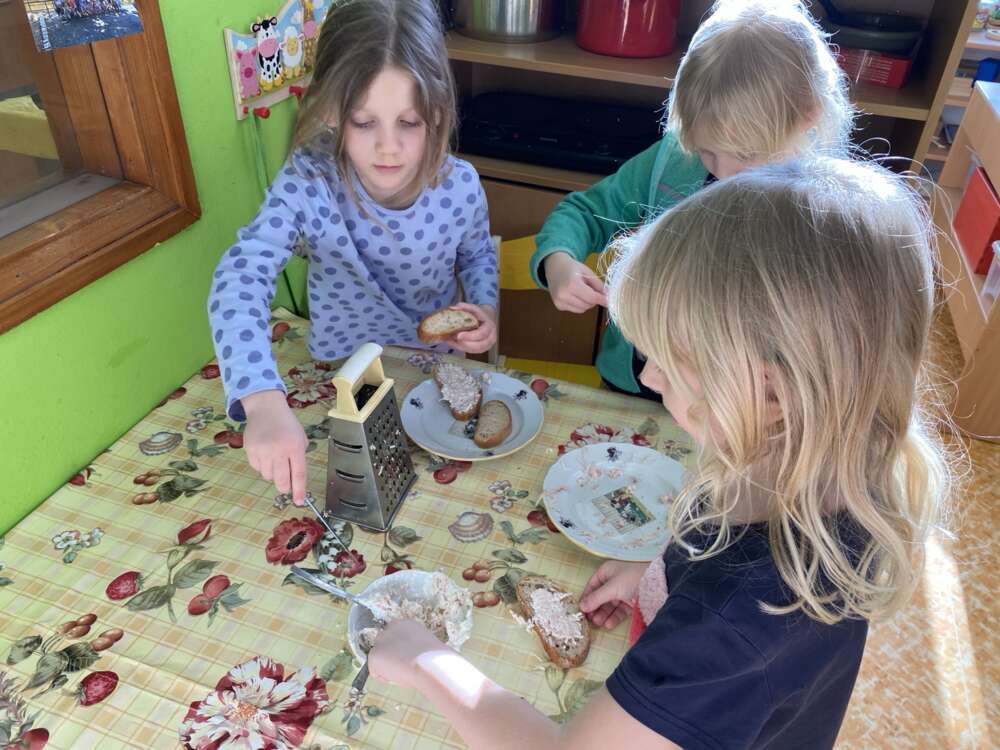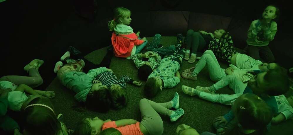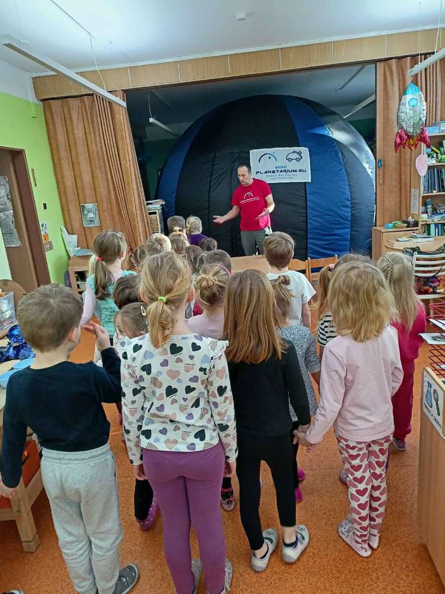 Pondělí jsme zahájili dooslavením svátků našich kamarádů, jak jinak než zdravým pohoštěním od rodičů. V úterý si Káčátka zkusila sama připravit pomazánku, kterou si vychutnala na čerstvém vzduchu. A dnes nás čekala další zábava, přijelo k nám mobilní planetárium, které nás kulturně vzdělávalo na téma , Podmořský svět, Koloběh vody"