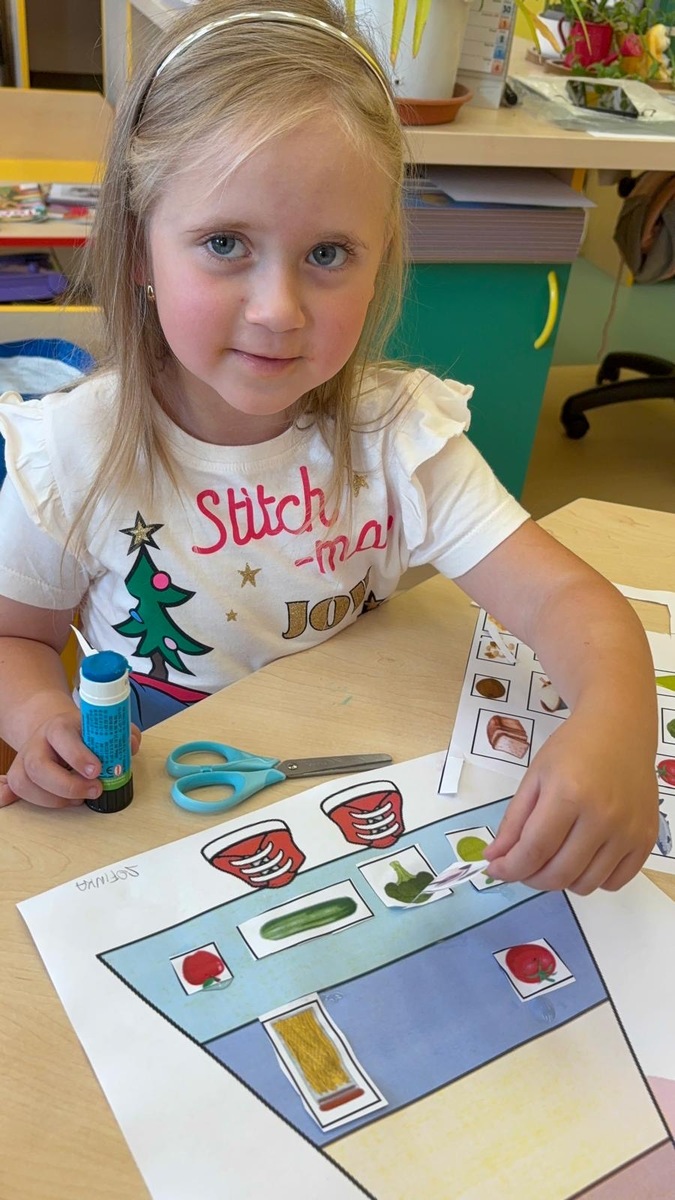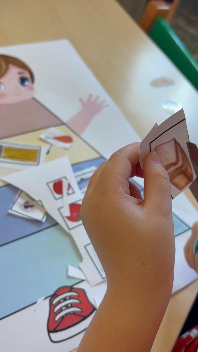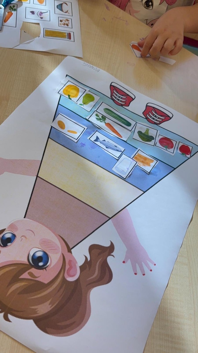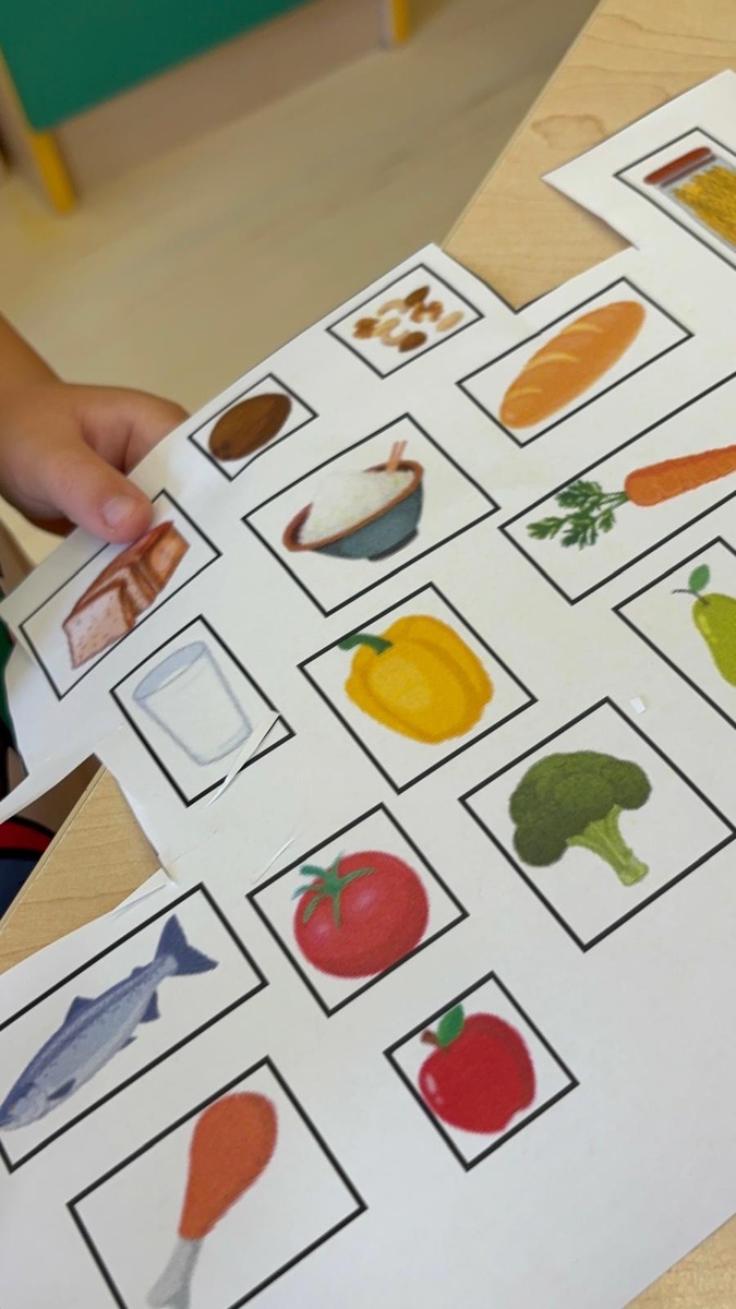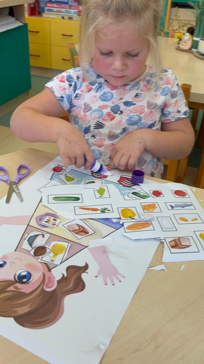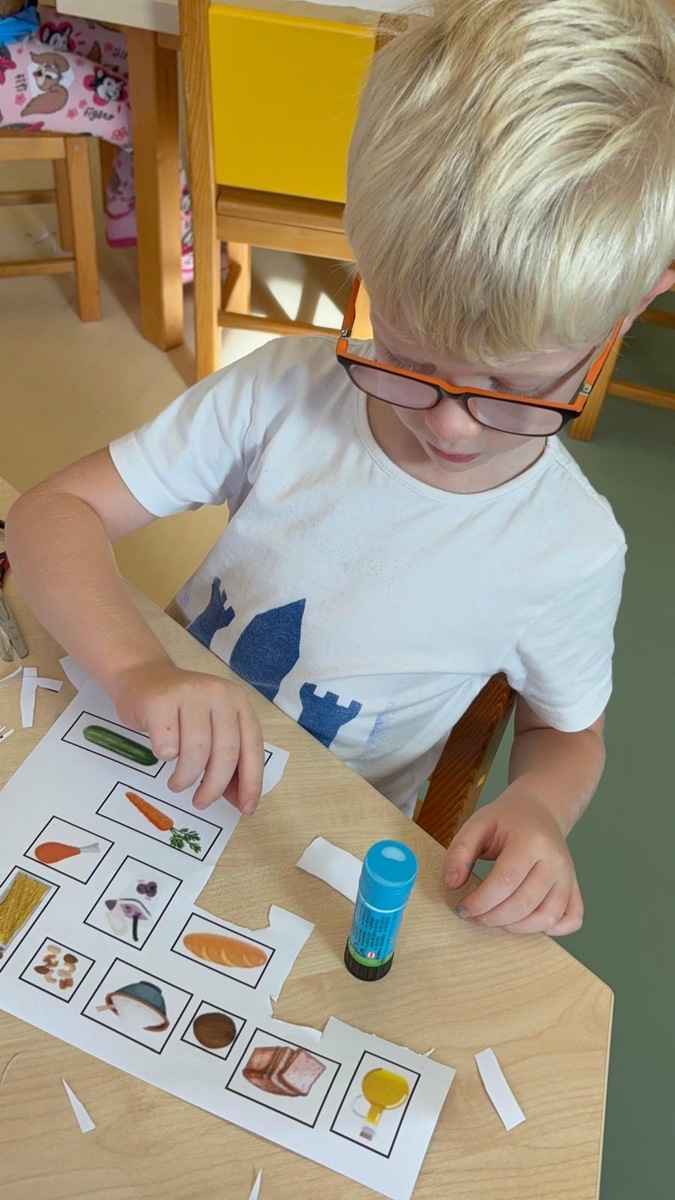 VZDĚLÁVÁME SE Tvoříme potravinovou pyramidu Dnes si děti povídaly o zdravém stravování. Stříhaly obrázky potravin a společně je lepily do potravinové pyramidy. Učily se rozlišovat jednotlivé skupiny potravin – sacharidy, bílkoviny, tuky, ovoce a zeleninu. Díky této aktivitě si děti uvědomily, které potraviny nám dodávají energii a proč je důležité jíst pestře a vyváženě.