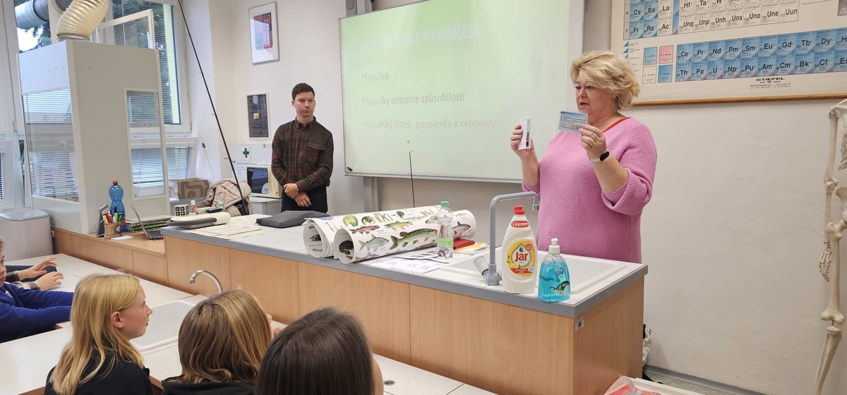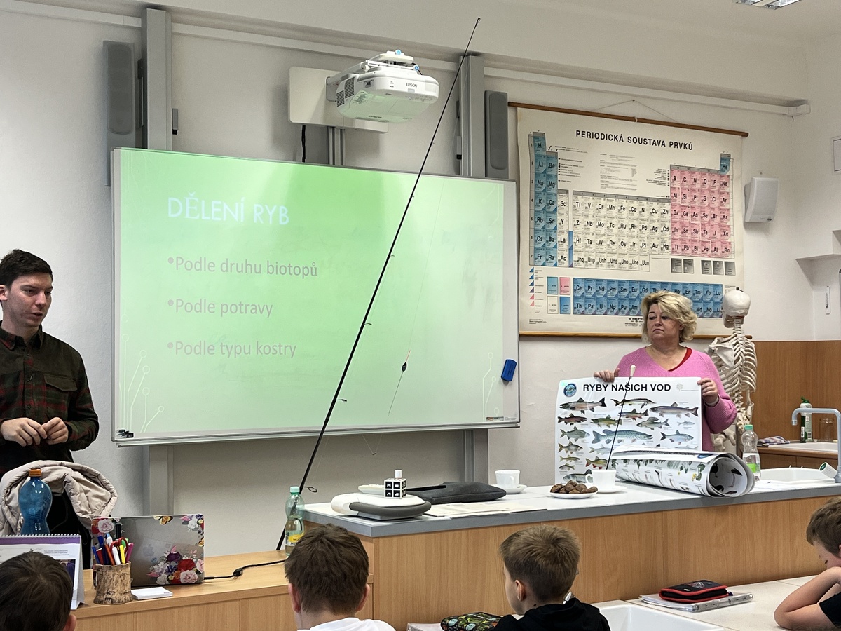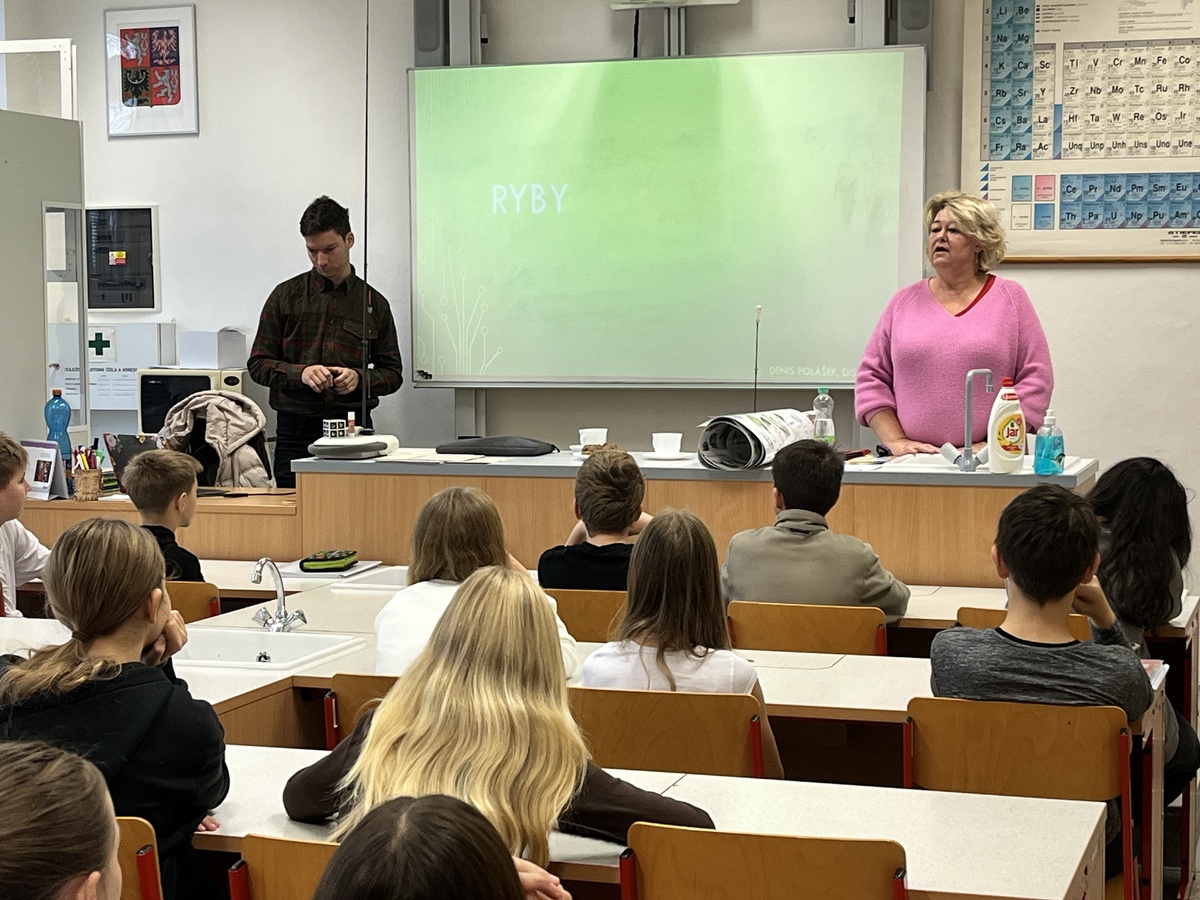 V rámci programu Skutečně zdravá škola navazujeme spolupráci s externisty, kteří jsou odborníky ve svém oboru. V pondělí 3. listopadu jsme přivítali pana Denise Poláška a paní Editu Studenou, která vede rybářský kroužek v DDM v Hlučíně. Připravili si přednášku pro žáky 7. ročníků na téma ryby, rybaření a sportovní rybolov, ve které představili naše nejznámější sladkovodní ryby velice poutavým způsobem. Žáci samotní měli mnoho dotazů, aby se dozvěděli úplně všechno, zejména to, které ryby se loví v jakých vodách a jakým způsobem nebo kdy se lovit nesmí. Zajímalo je, čím se živí, jak dlouho žijí a kde. Která ryba má nejchutnější maso a jak se ryby zpracovávají. Velký úspěch sklidilo také nahazování prutu. Jsme rádi, že jsme podpořili zájem o přírodu a budeme rádi, když v takových aktivitách budeme pokračovat.