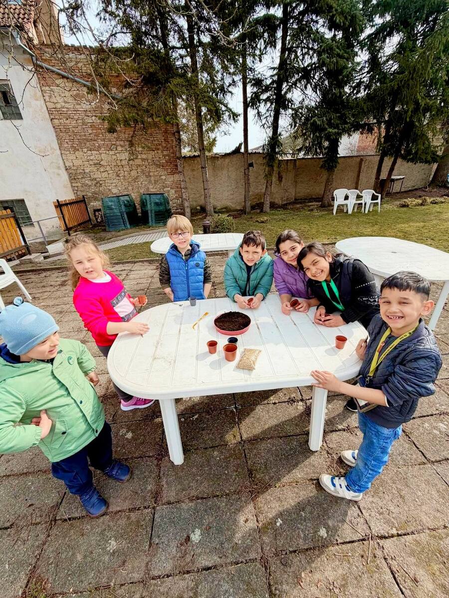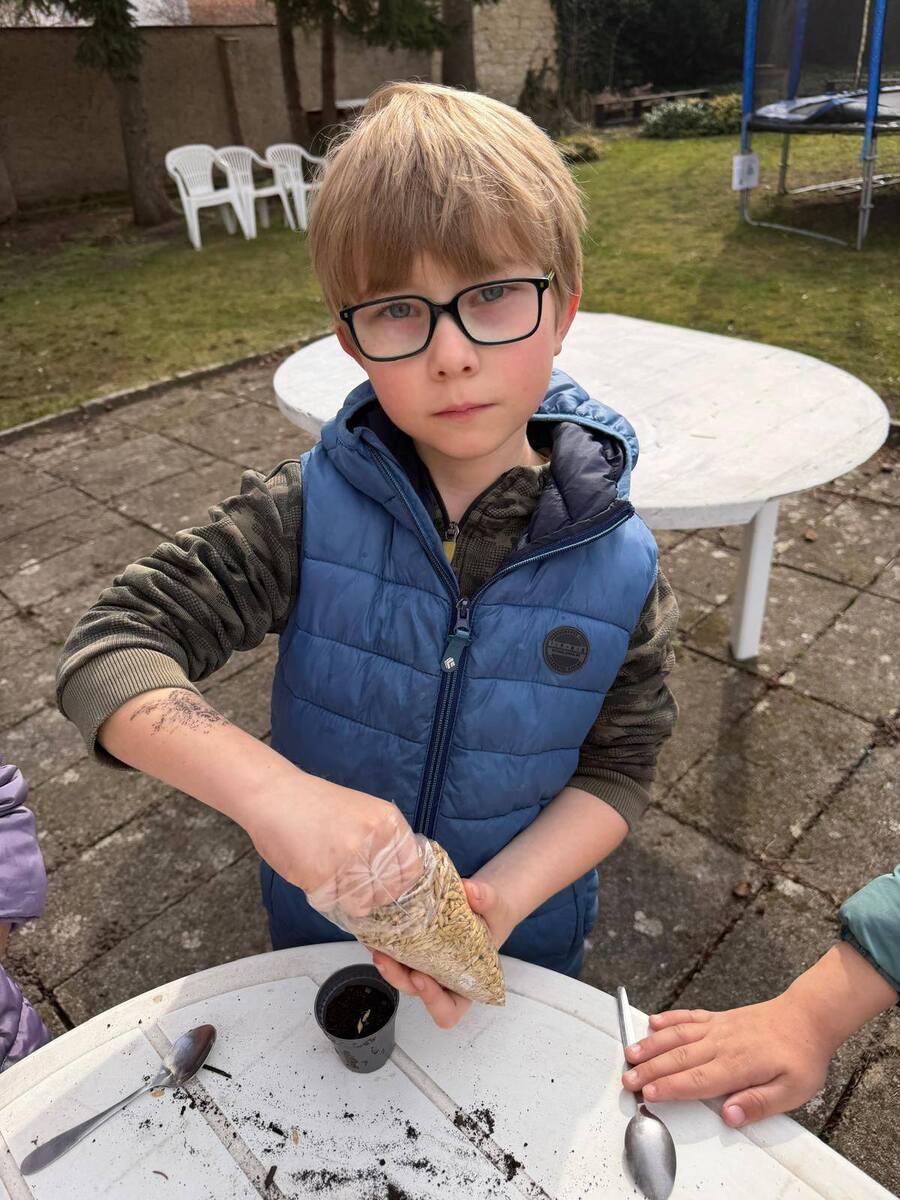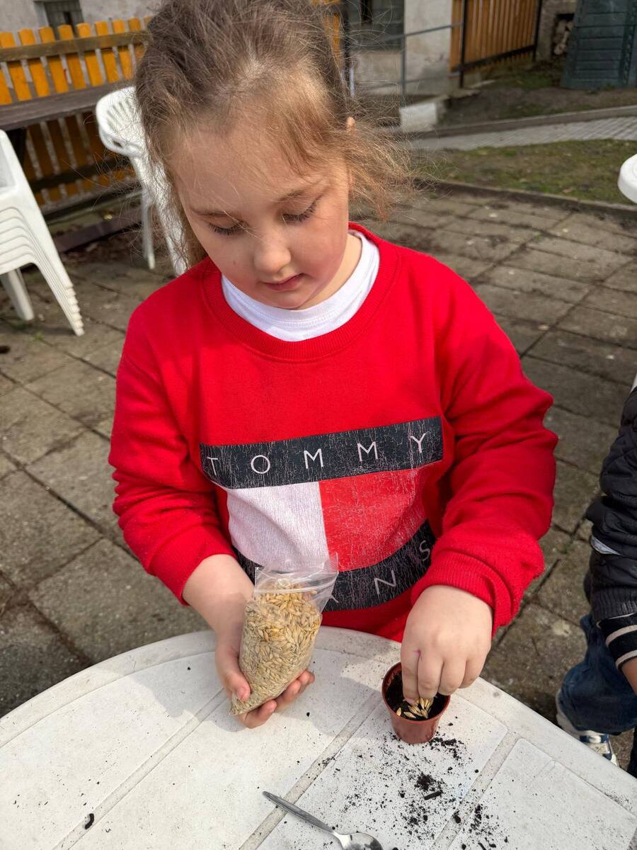 Dnešní pracovní činnosti první třídy. Zasadili jsme si osení a vytvořili jarní výzdobu.