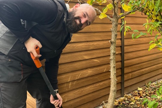 Děkujeme za dnešní velkou pomoc při přesazování stromu do budoucího relaxačního dětského prostoru jedlé a medonosné zahrady. Ano, nyní vypadá pohled zvláštně - uprostřed pískoviště strom, ale těšíme se na jaro.