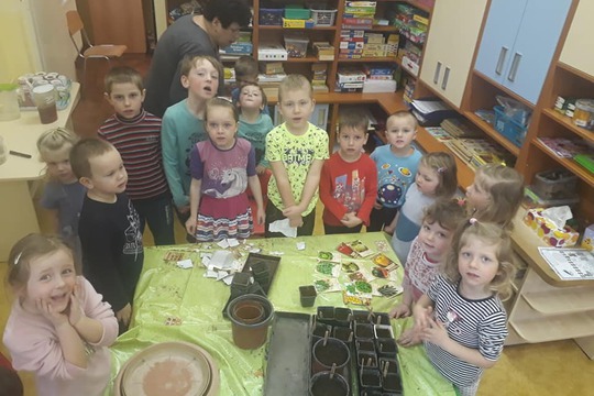 Počasí nás naladilo na předpěstování různých semínek ovoce a zeleniy na naši zahrádku, kterou máme na zahradě MŠ.