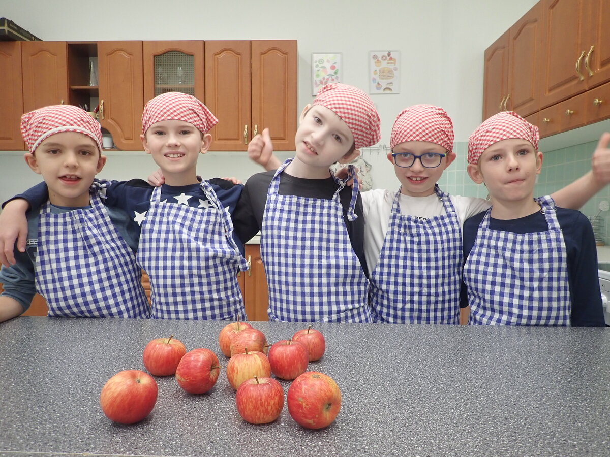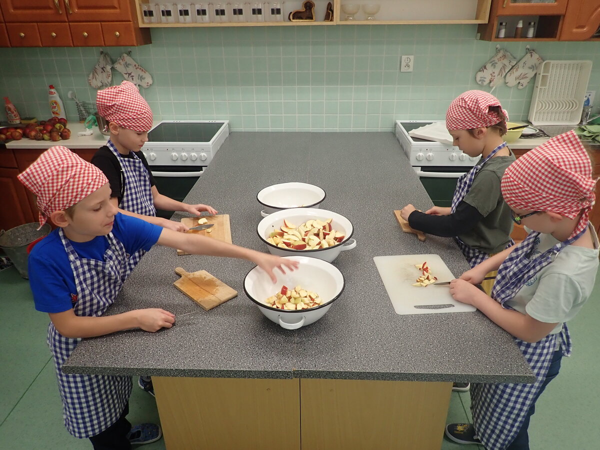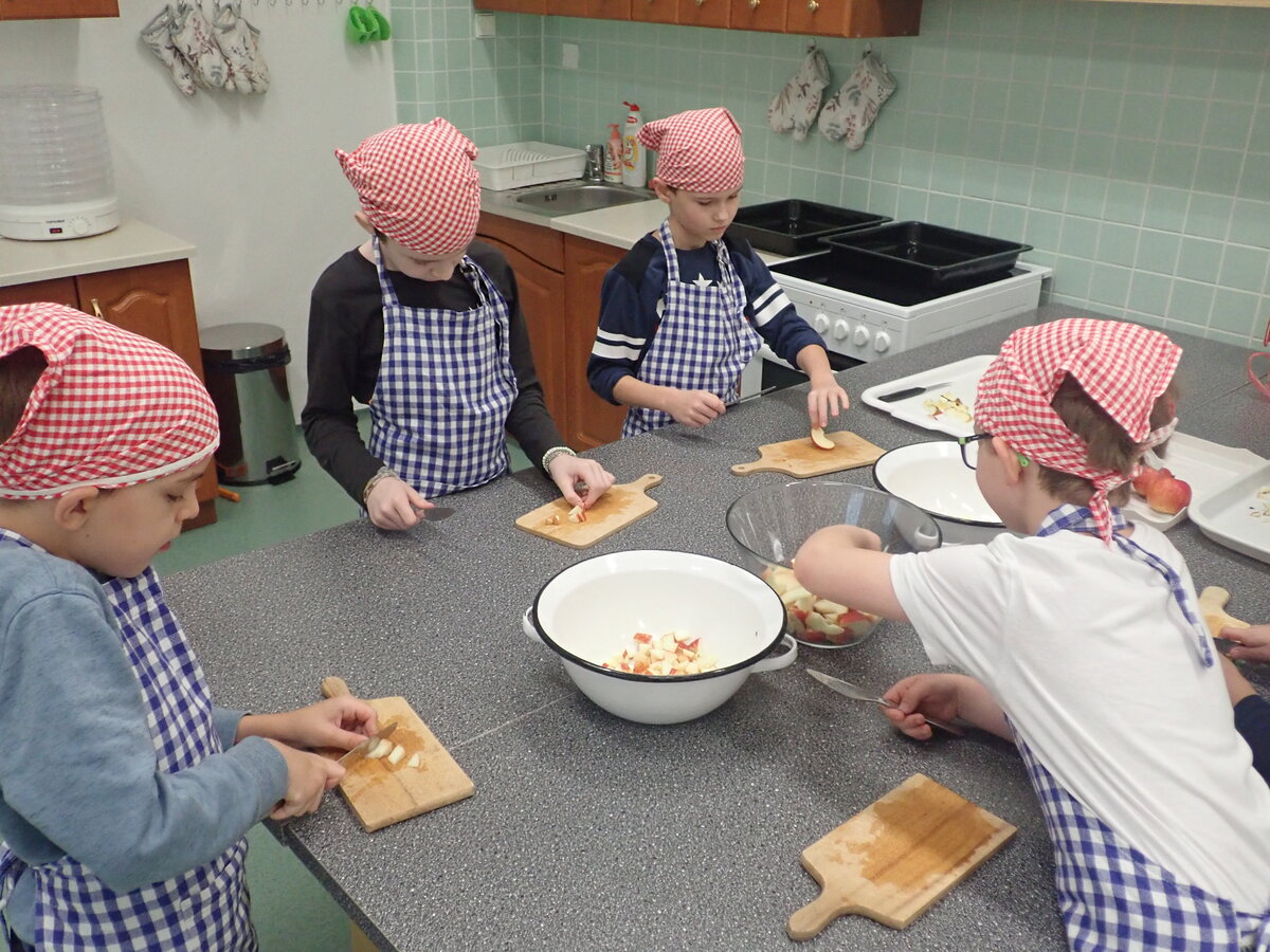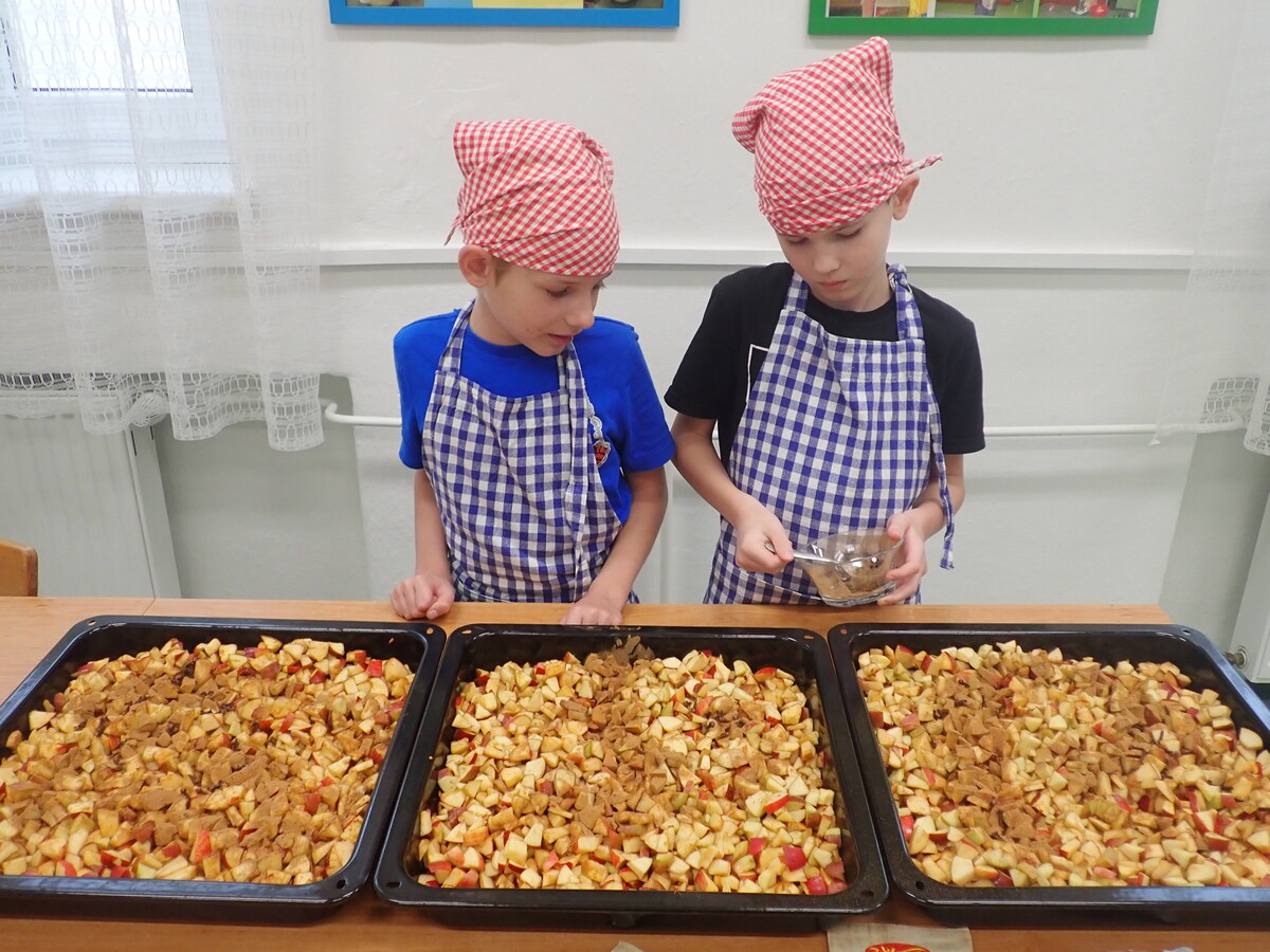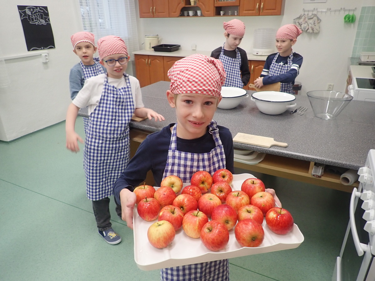 Na podzim jsme na školní zahradě posbírali jablka. Teď jsme se pustili do jejich zpracování a vyzkoušeli jsme si přípravu pečeného jablečného čaje.