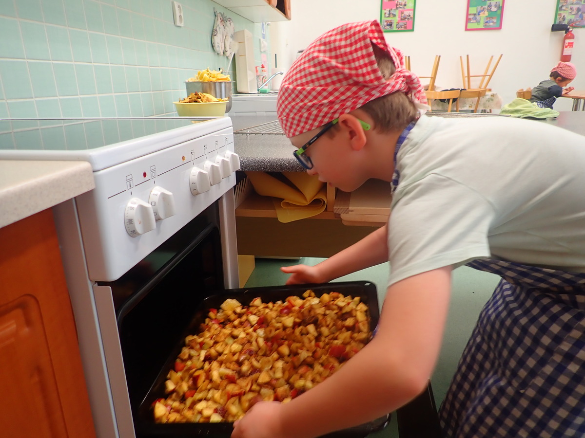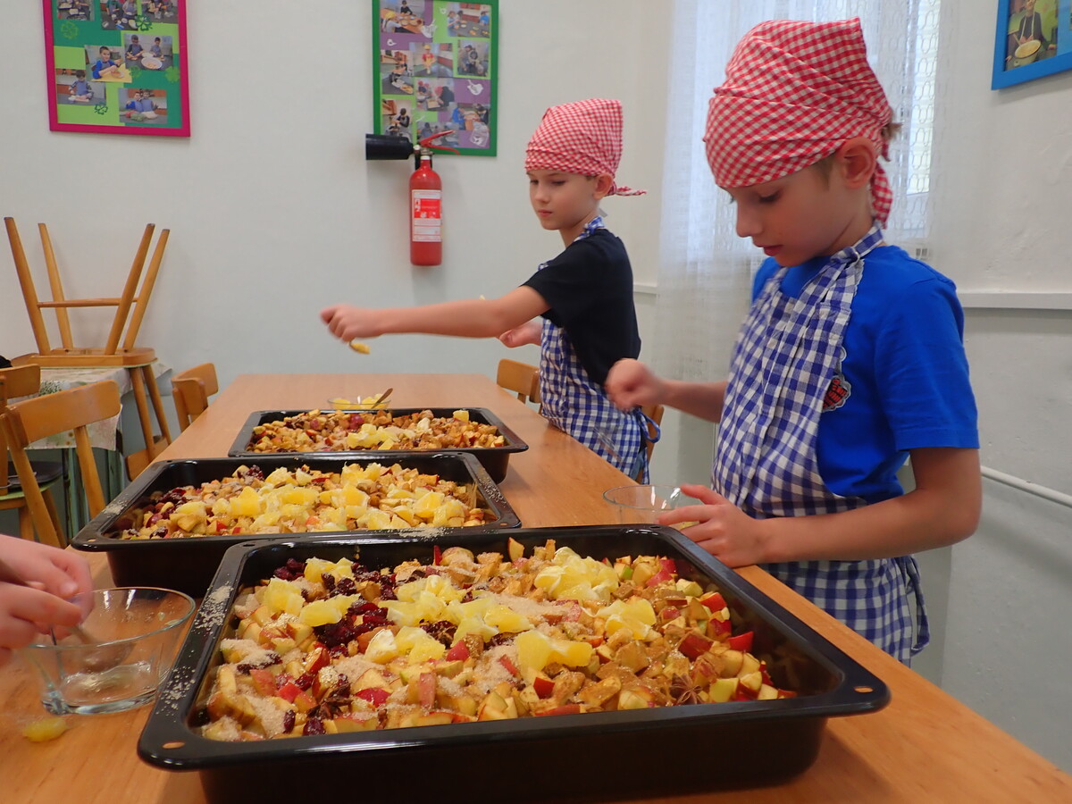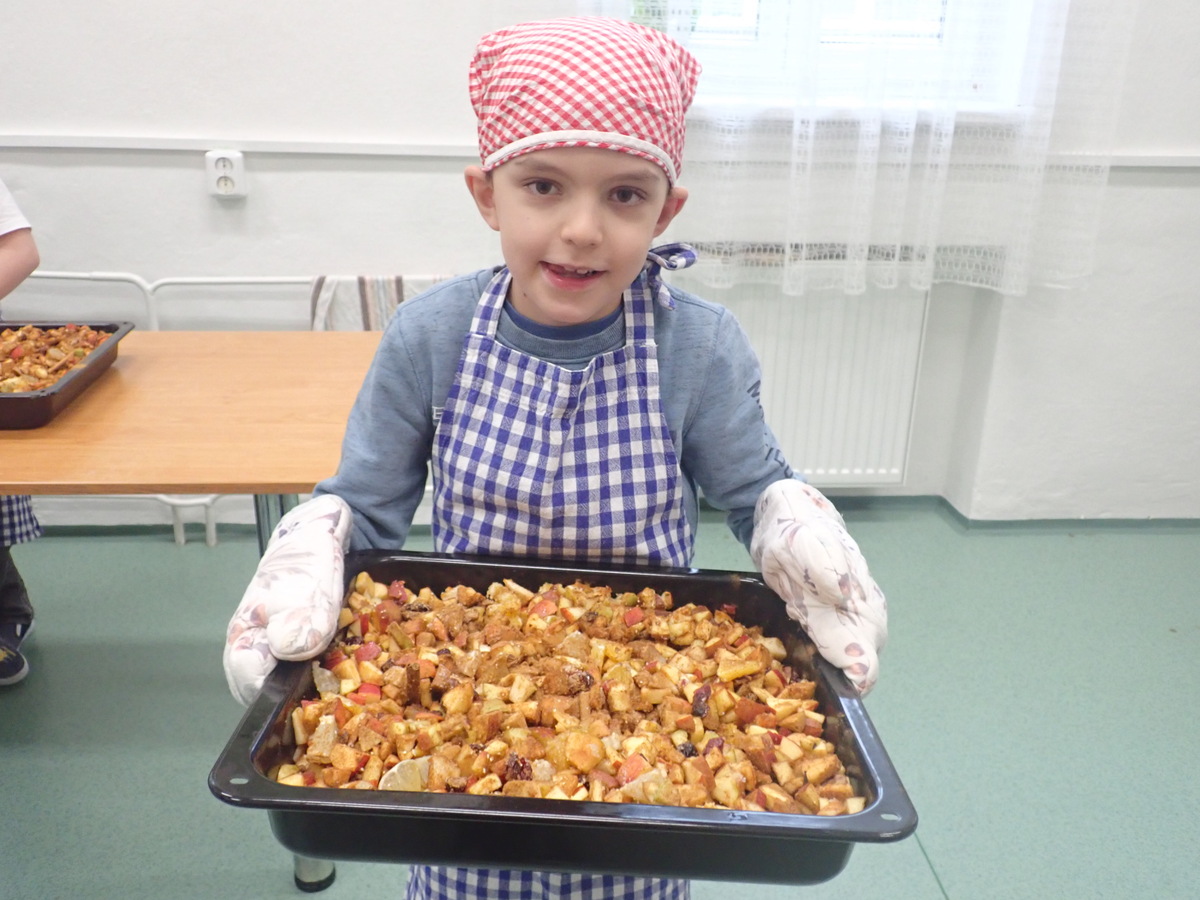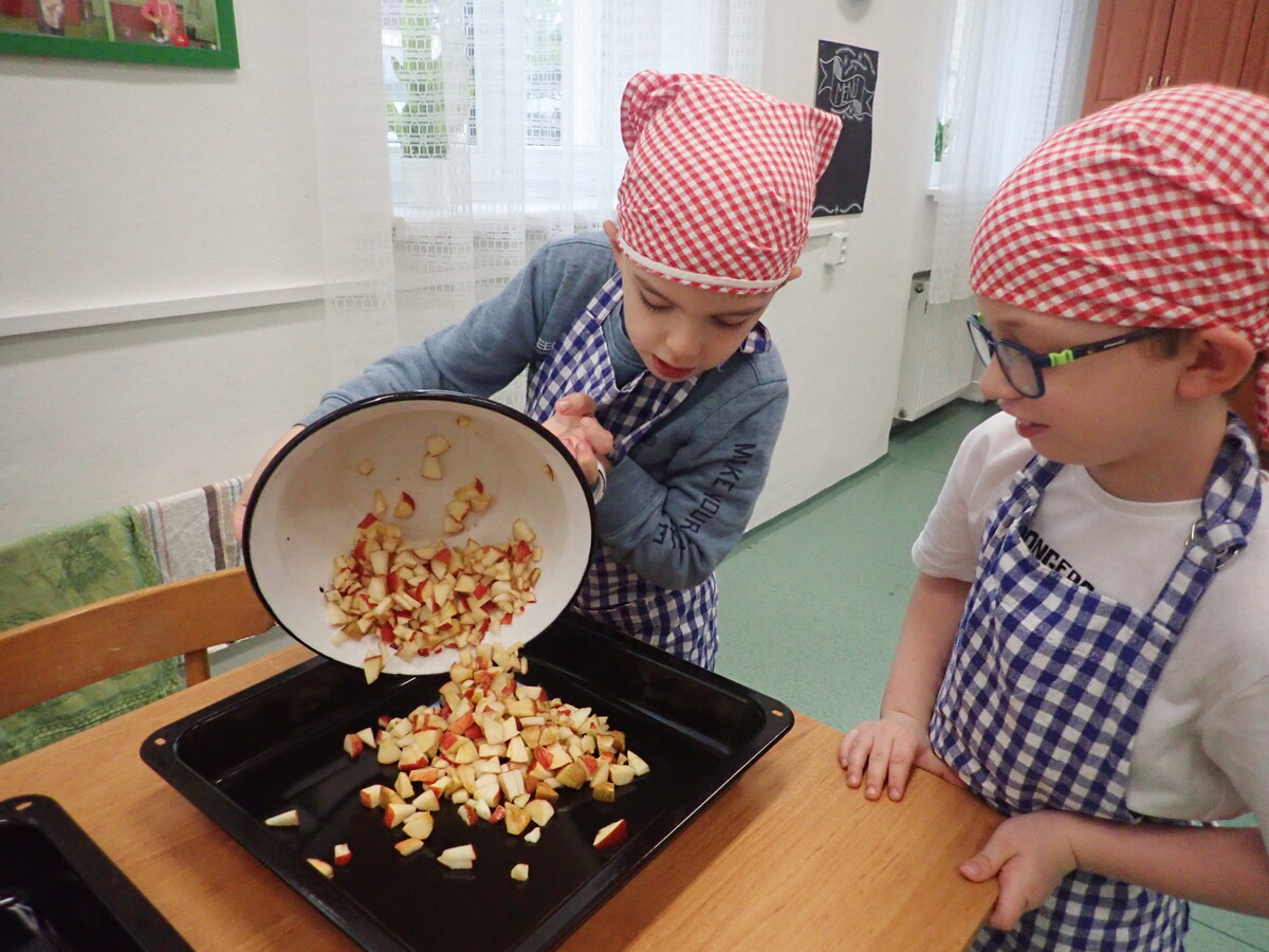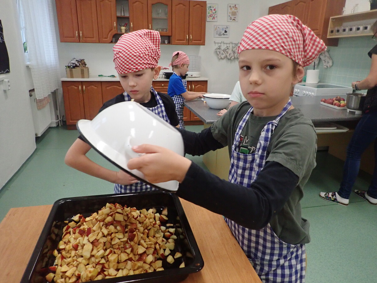 Na podzim jsme na školní zahradě posbírali jablka. Teď jsme se pustili do jejich zpracování a vyzkoušeli jsme si přípravu pečeného jablečného čaje.
