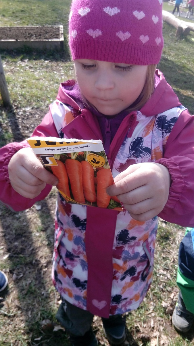 S prvními teplejšími dny jsme se konečně pustili do přípravy našich školních záhonků. Kromě pár čerstvě probuzených broučků jsme našli už i pořádně dlouhé žížaly. Ty jsme samozřejmě v záhoncích nechali. Po vysetí semínek někteří zasedli k záhonku a čekali "kdy už konečně poroste ta mrkvička ....".