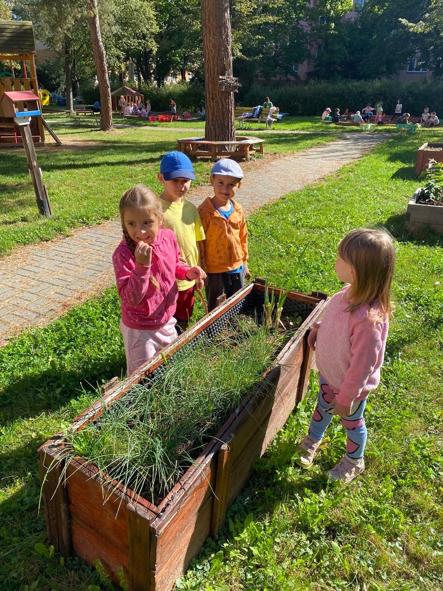 Ve třídě Beruška jsme připravovali náš záhonek a zimu a u toho jsme ochutnávali pažitku, kterou jsme si vypěstovali. Posbírali jsme také Měsíček lékařský, který usušíme a uděláme si z něho čaj.