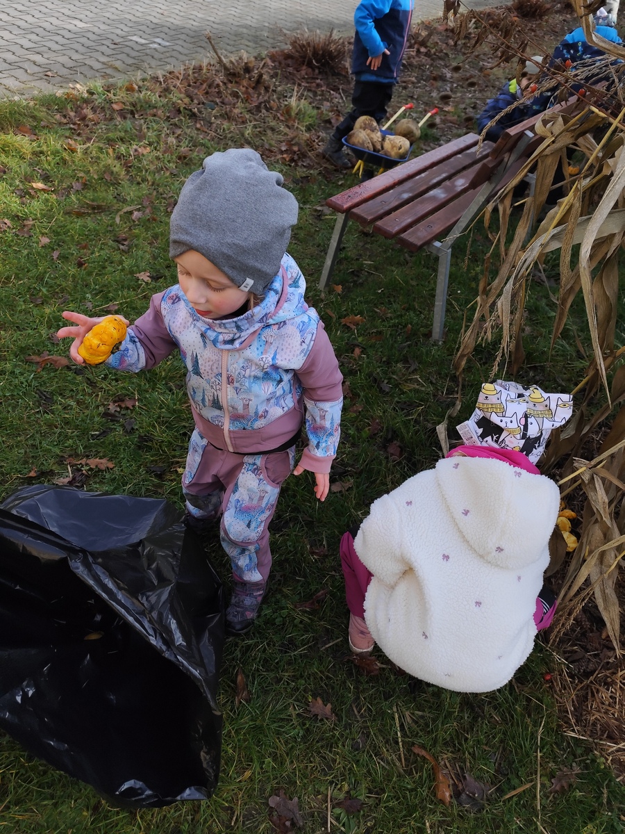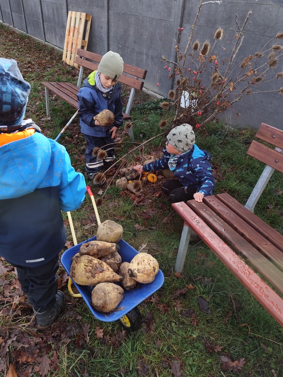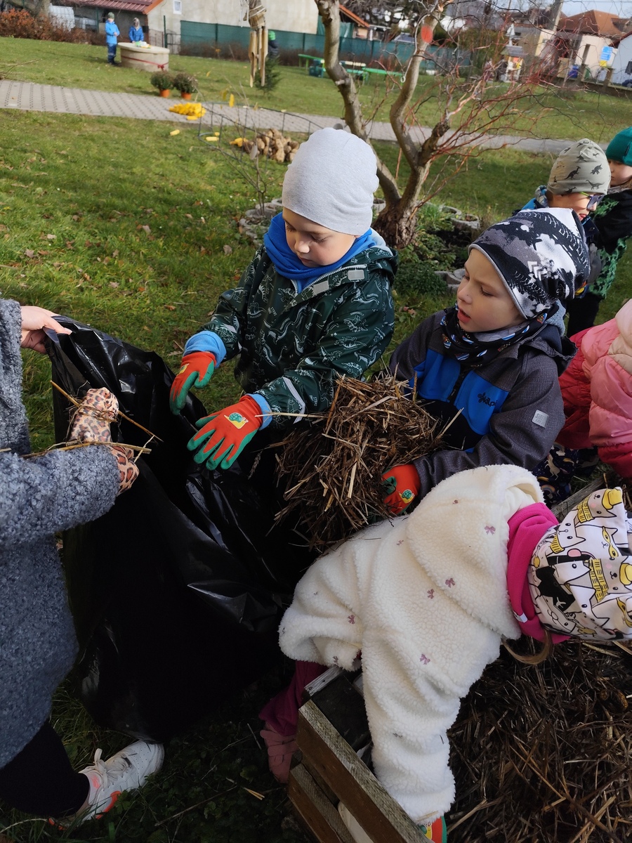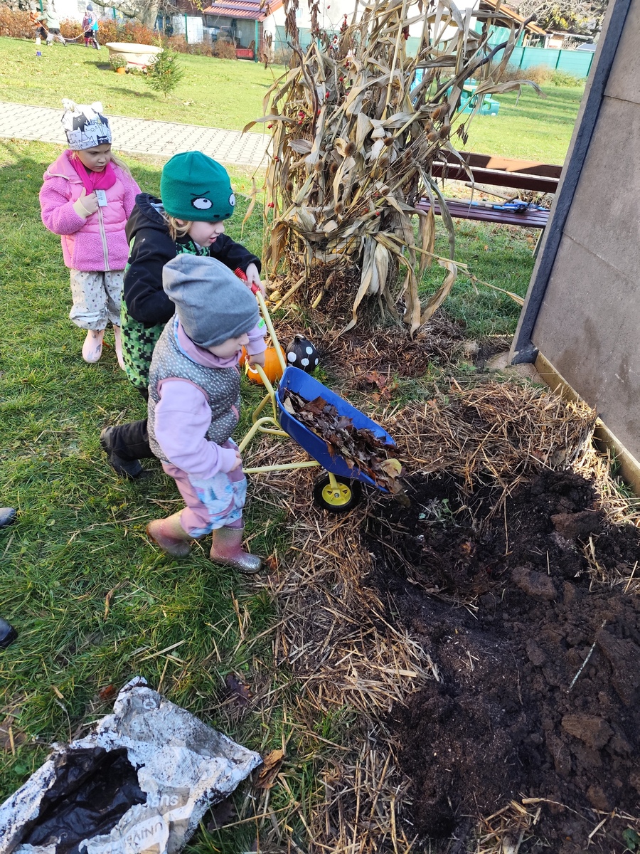 Při práci jsme si povídali o tom, jak si příroda potřebuje odpočinout, aby na jaře mohla znovu ožít. Zahrada se pomalu ukládala ke spánku a my s ní. Nebyl to jen úklid, ale společný čas, který nás spojil a připomněl, že i malé ruce dokážou udělat velký kus práce.
