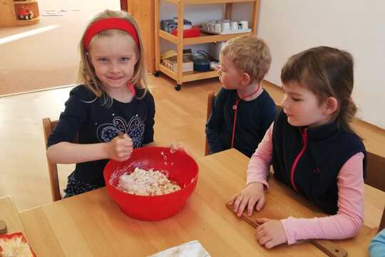 Děti v naší školce nejen pečou, ale také si umí samy připravit svačinku. A že taková svačinka chutná nejlépe, to snad ani nemusíme říkat.